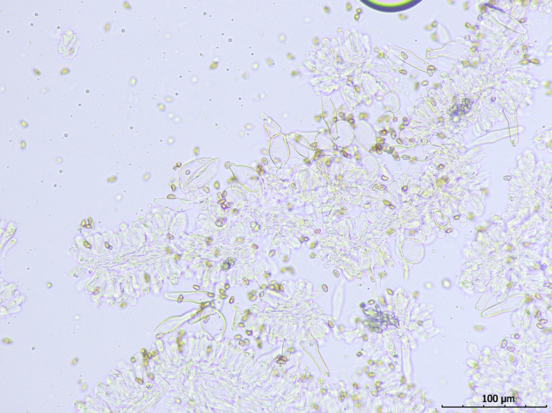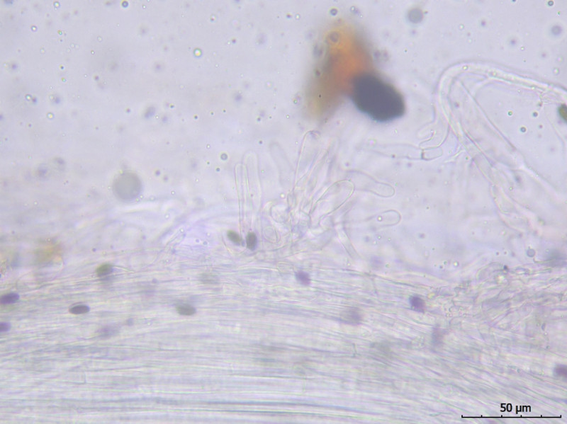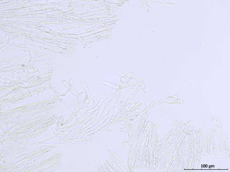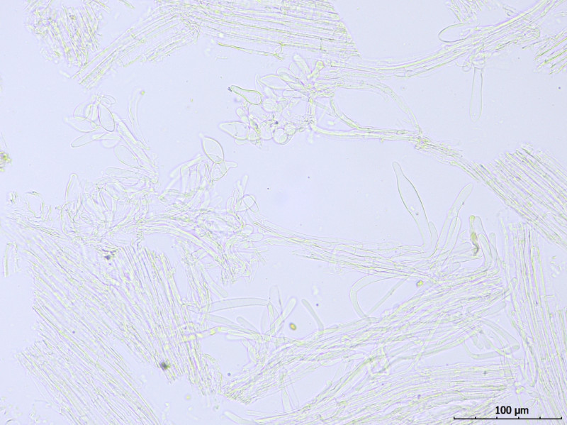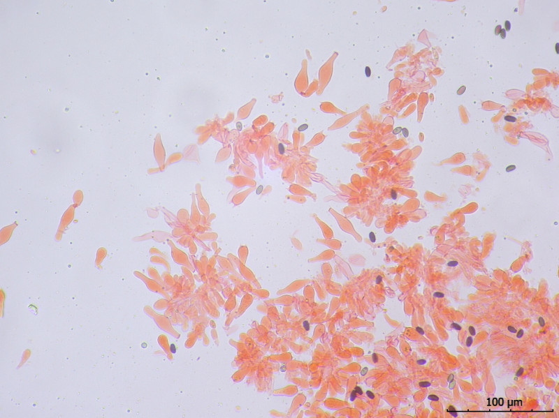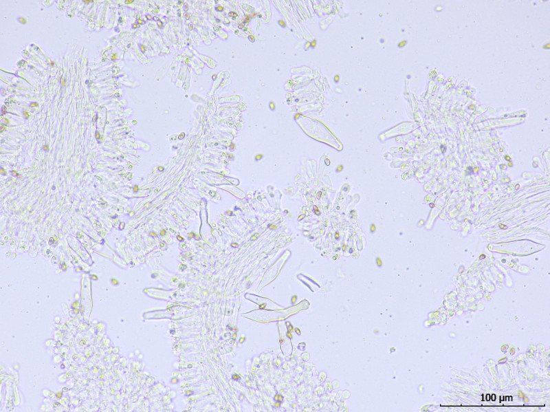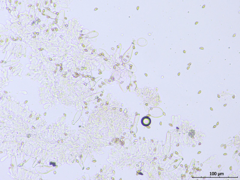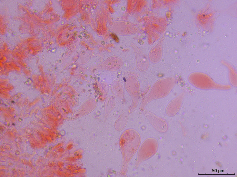 7. Lepista sp. hat mir Probleme bereitet. Ich habe zuerst an eine Hebeloma gedacht, aber mit hellbraunen Sporenpulver, cyanophilen Sporen und weder Pleuro- noch Cheilozystiden wird das wohl eine Lepista sein. Ich denke mal L. nuda