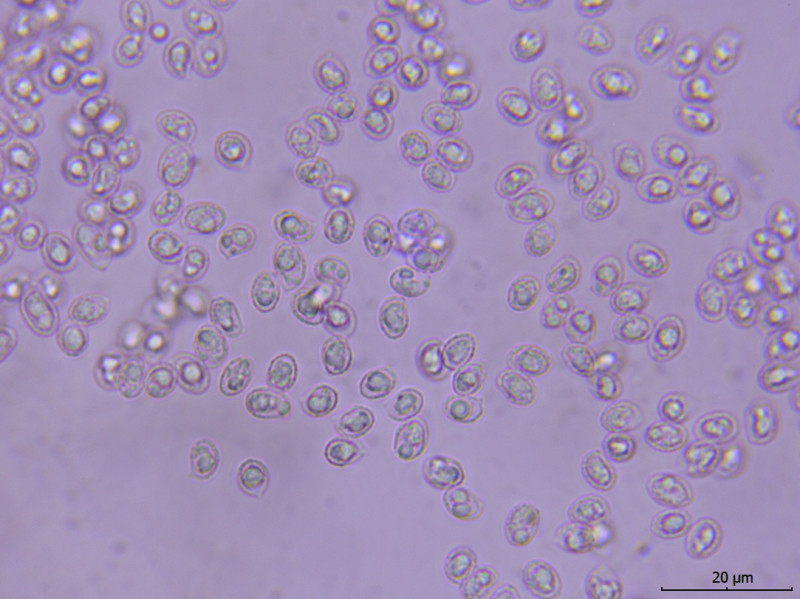 Sporen: 7±4.6 x 5.6±0.3 Q: 1.3±0.1
