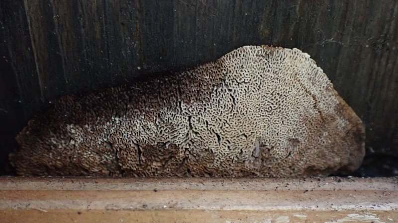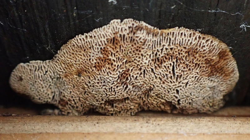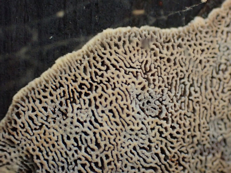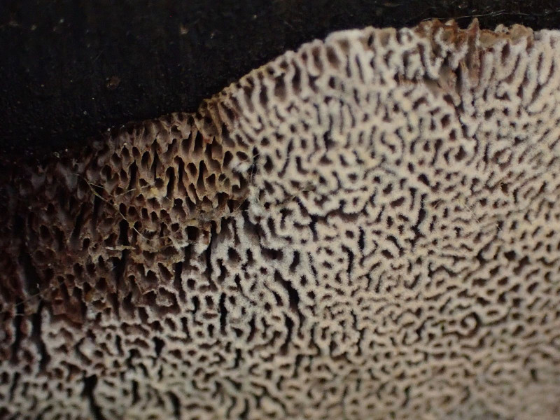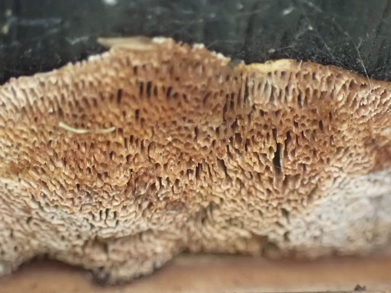 Wobei der hier in Frage kommende Gloeophyllum trabeum (Balkenblättling) auch eher weniger an Nadelholz wächst. Aber er kann es.