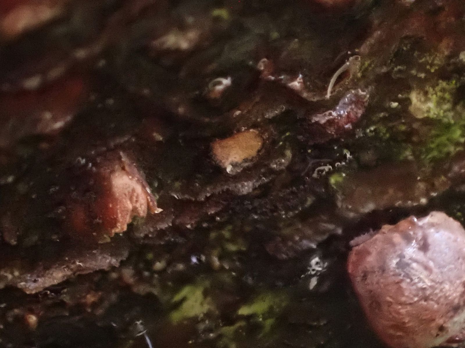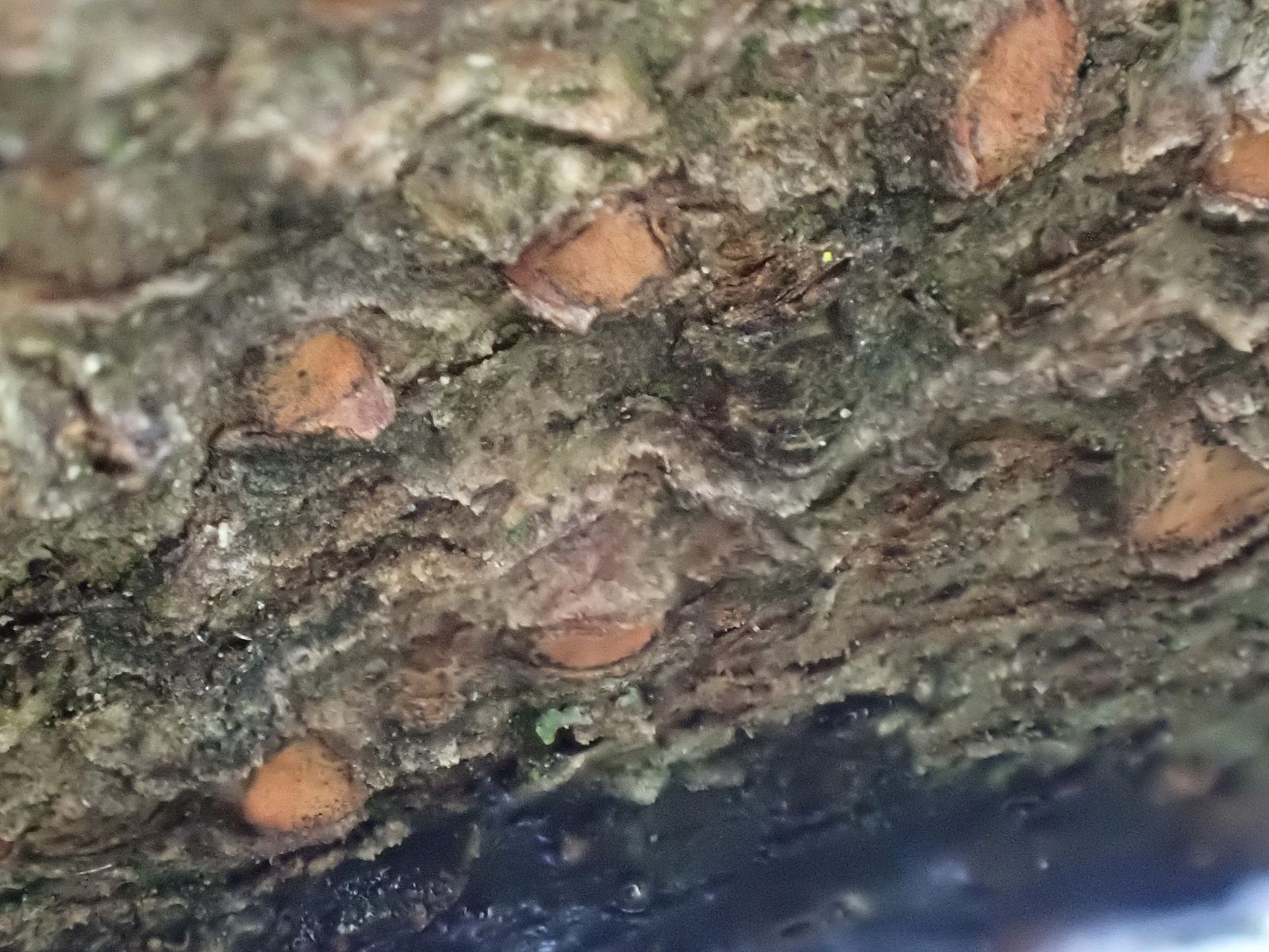 aus einem Ast, der schon länger im Garten liegt, kommen so zungenförmige Pilzchen, die schnell wieder abbrechen.