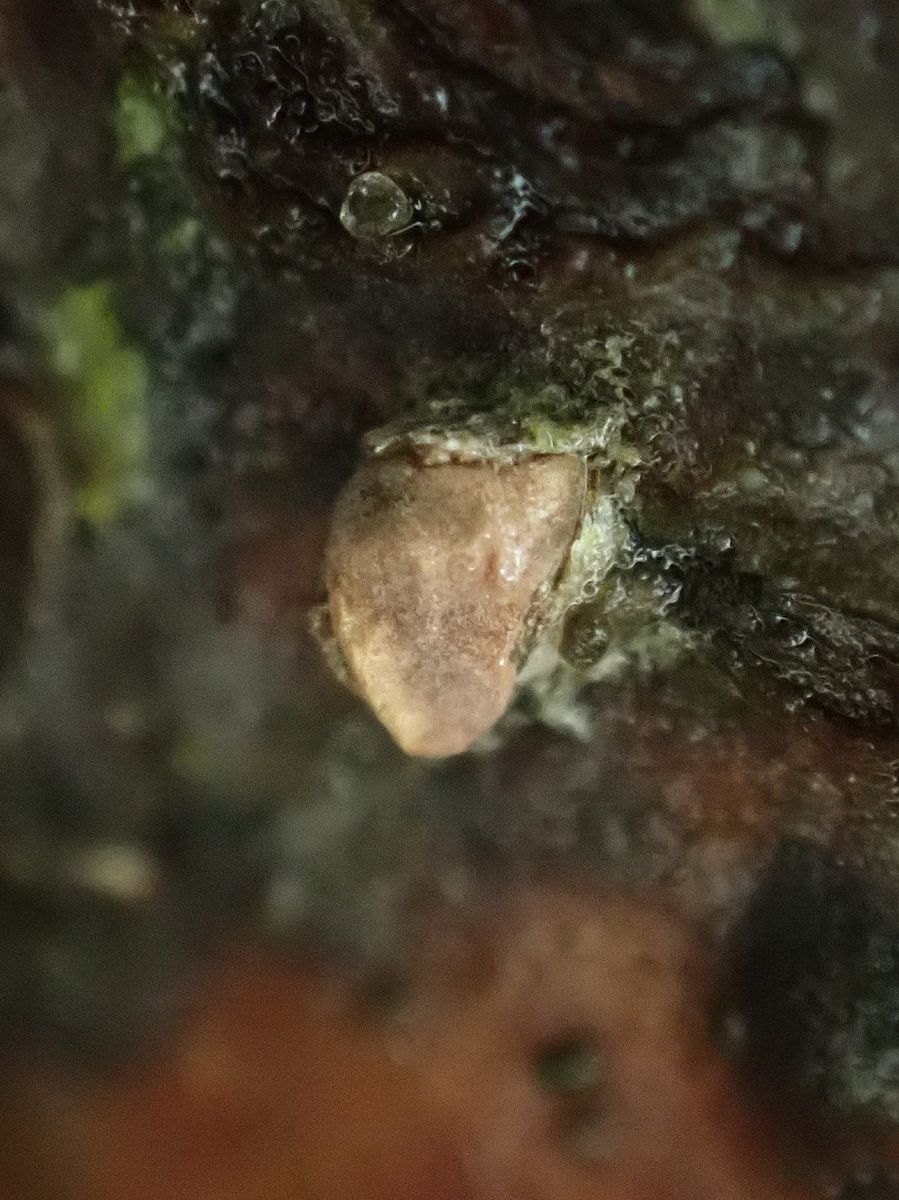 aus einem Ast, der schon länger im Garten liegt, kommen so zungenförmige Pilzchen, die schnell wieder abbrechen.