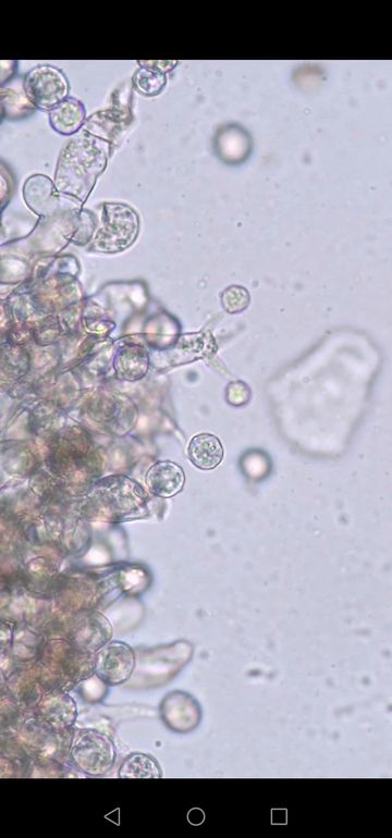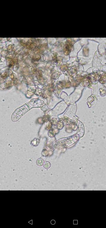 Hallo und guten Abend ich habe hier einen rindenpilz auf Fichte gefunden und möchte gerne fragen ob jemand ihn kennt die Sporen messen zwischen 9 und 12 mm lg