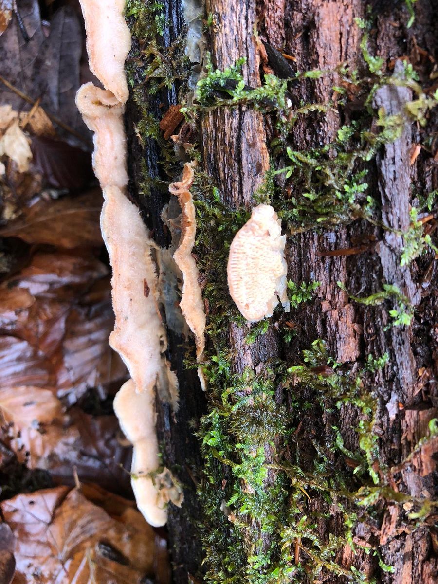 Wuchs auf einem Baumstumpf, leider war für mich nicht erkennbar ob Nadel-/Laubholz. Riecht süßlich.