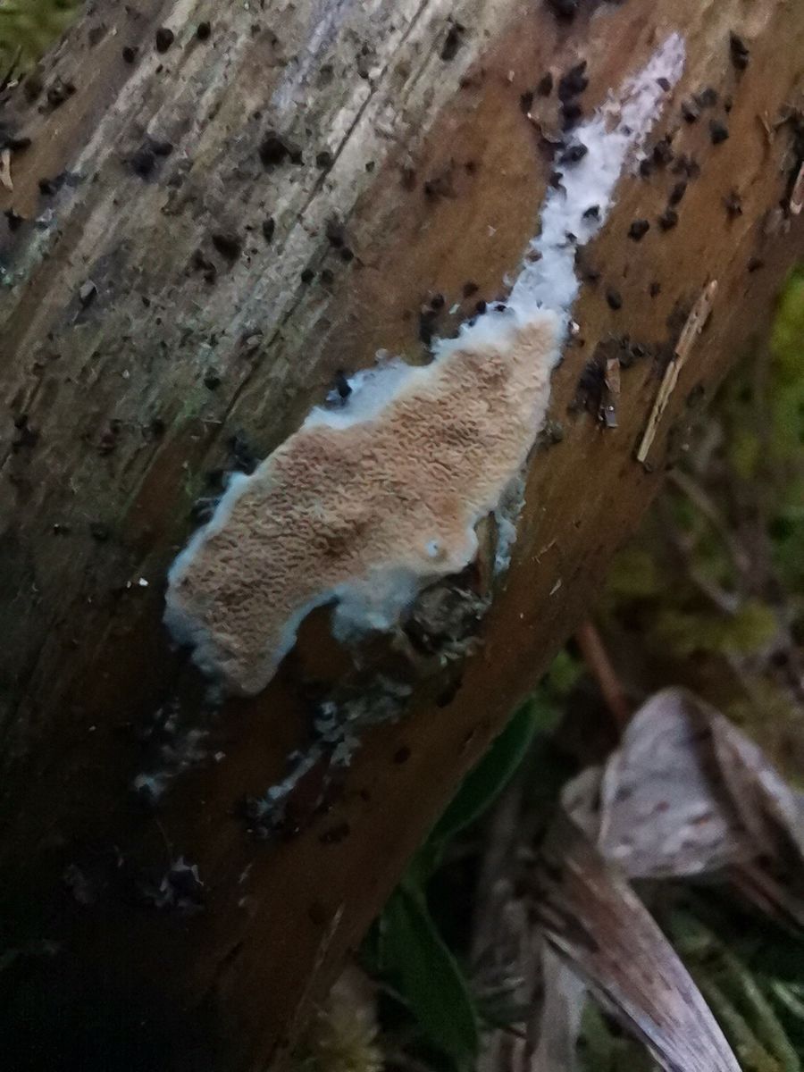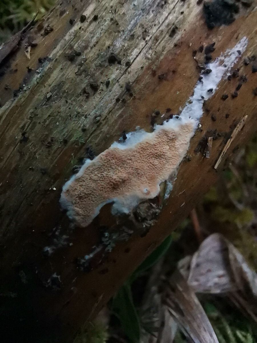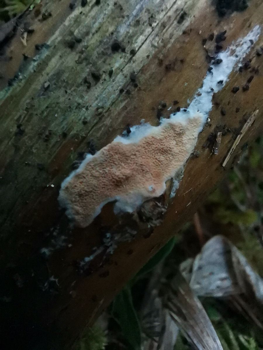 Makroskopisch schaut mir das eher nach dem Initialstadium von Gloeoporus taxicola aus.