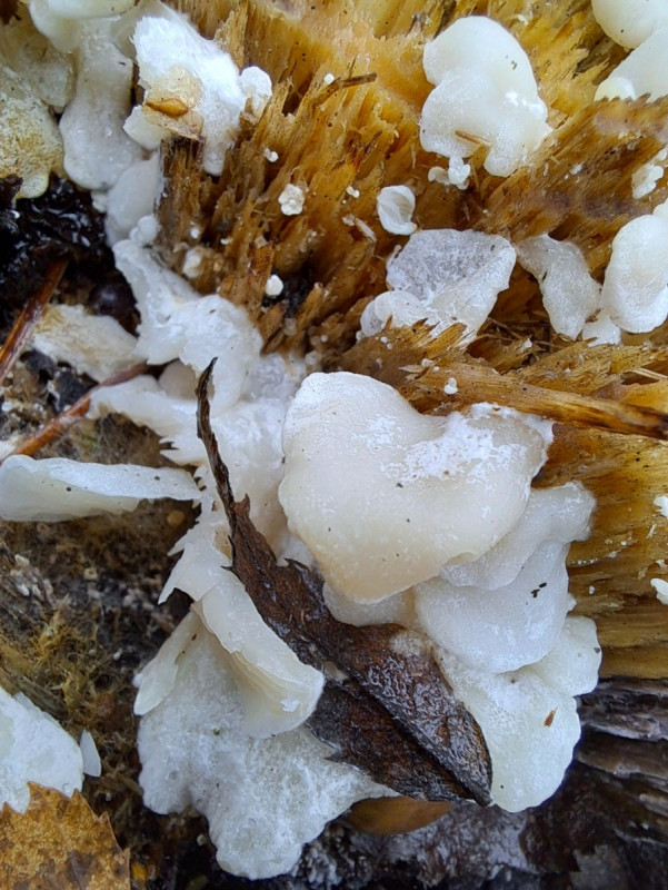 Weißer Lamellenpilz auf Birke