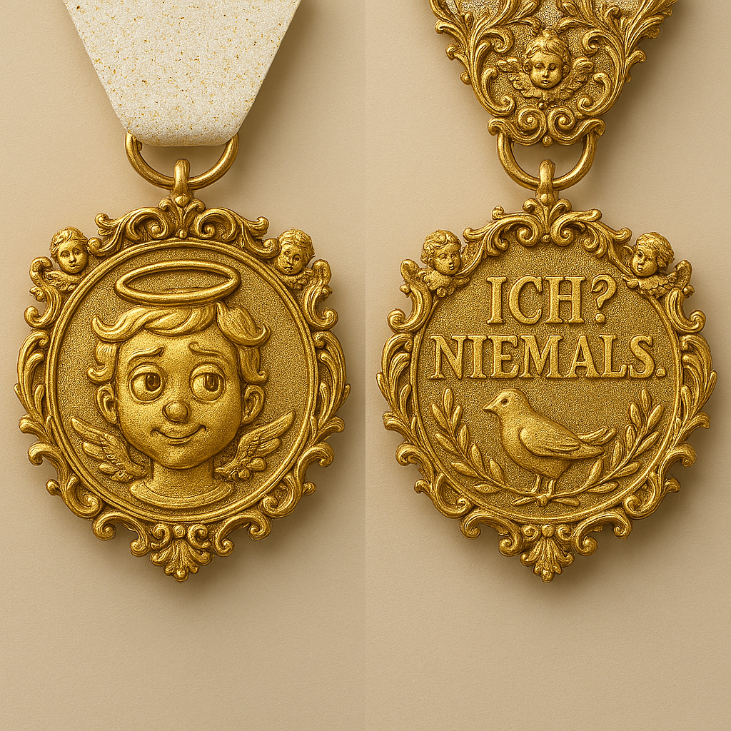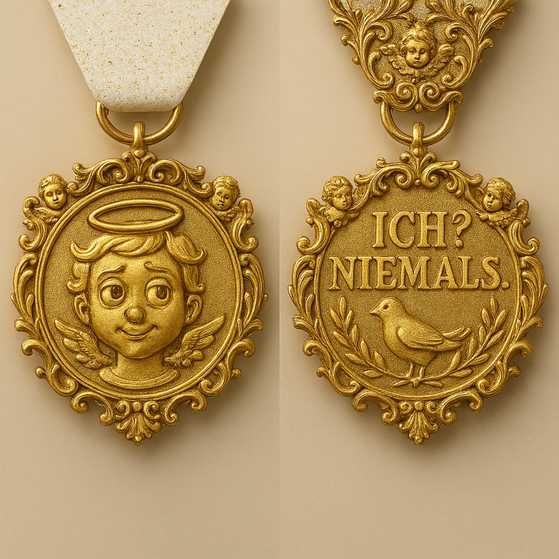 Ich verabreiche dir hiermit feierlich die goldene Medaille am Bande im Unschuld heucheln: