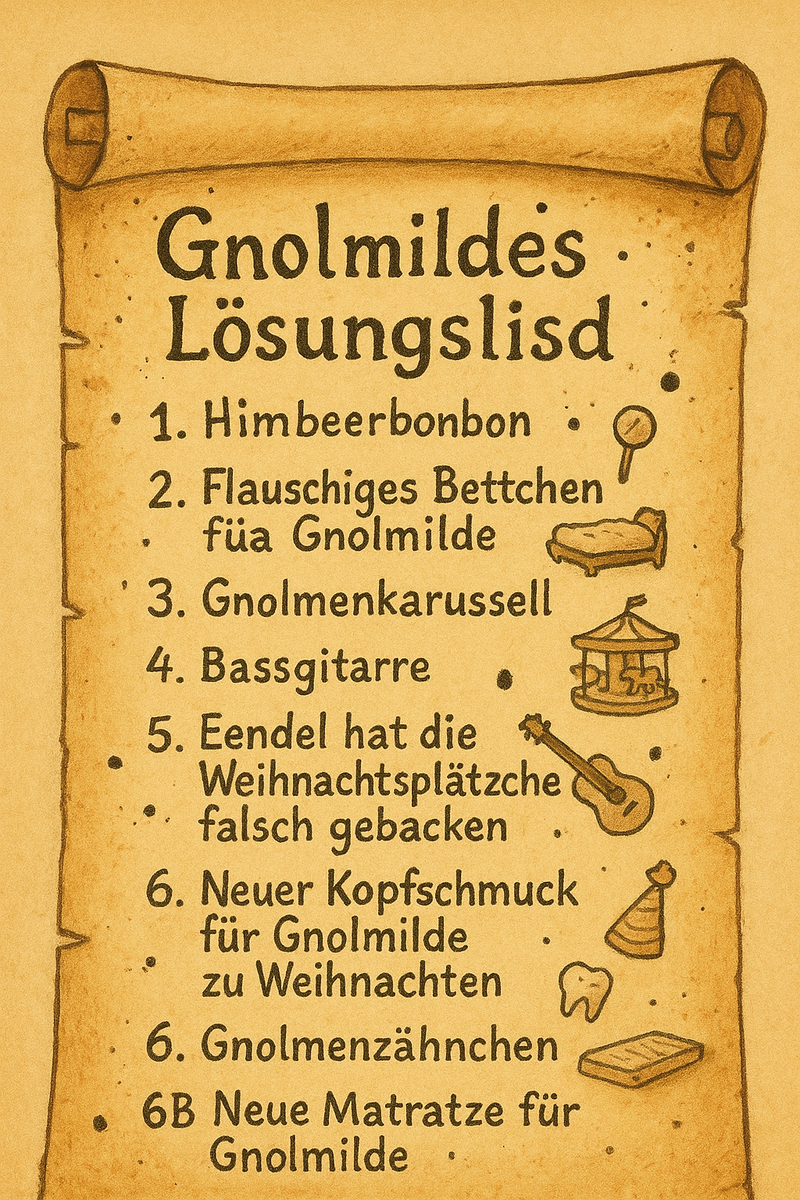Und zu allem Überfluss hat heute Gnolmilde ihre Lösungslisd an Hans geschickt und hat nicht meine genommen.