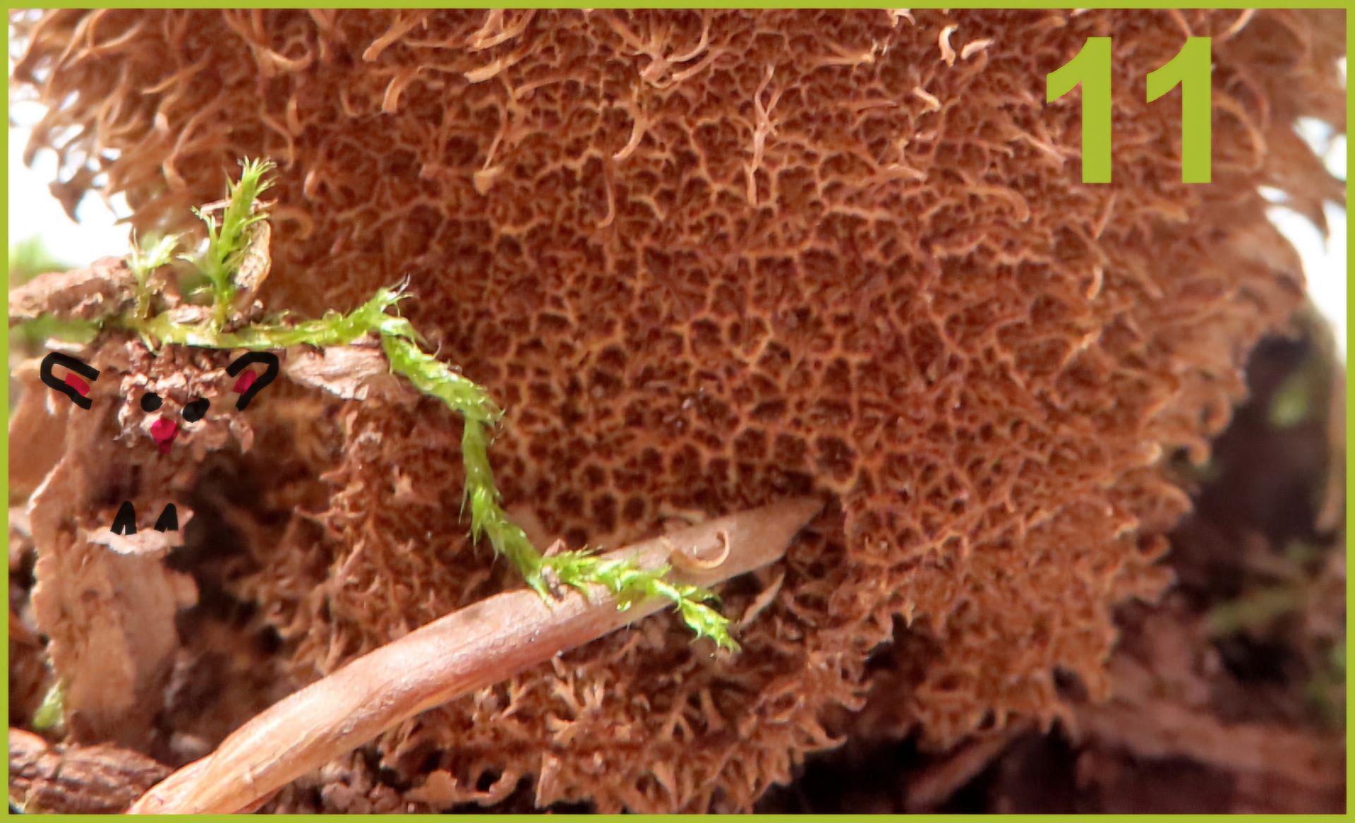 Du komm, lass doch bitte ein paar Plätzchen über. Hilf mir lieber, den Pilz auf dem Bild zu suchen.