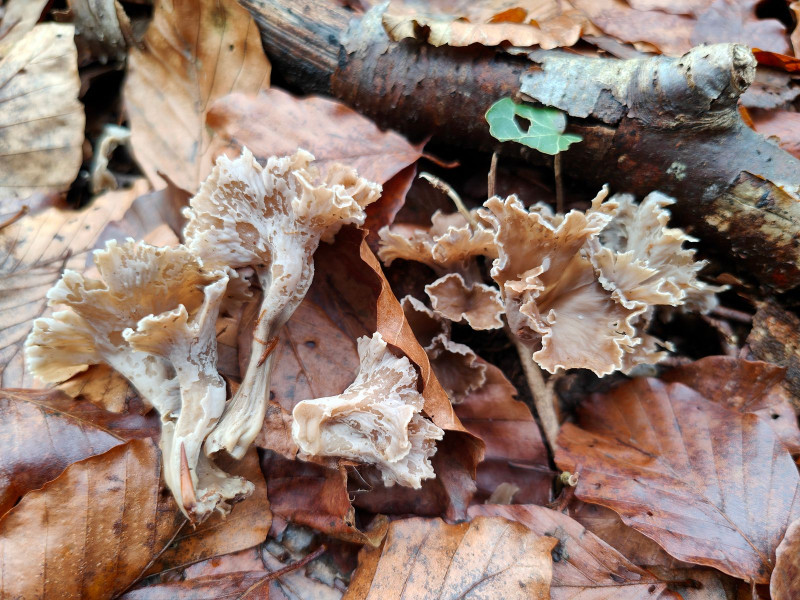 #12 unter dem Laub fand ich noch; Krausen Kraterelle (Pseudocraterellus undulatus) wäre im Prinzip auch ein Speisepilz, aber da bei uns schon paar mal unter null gewesen ist, blieb das im Wald.