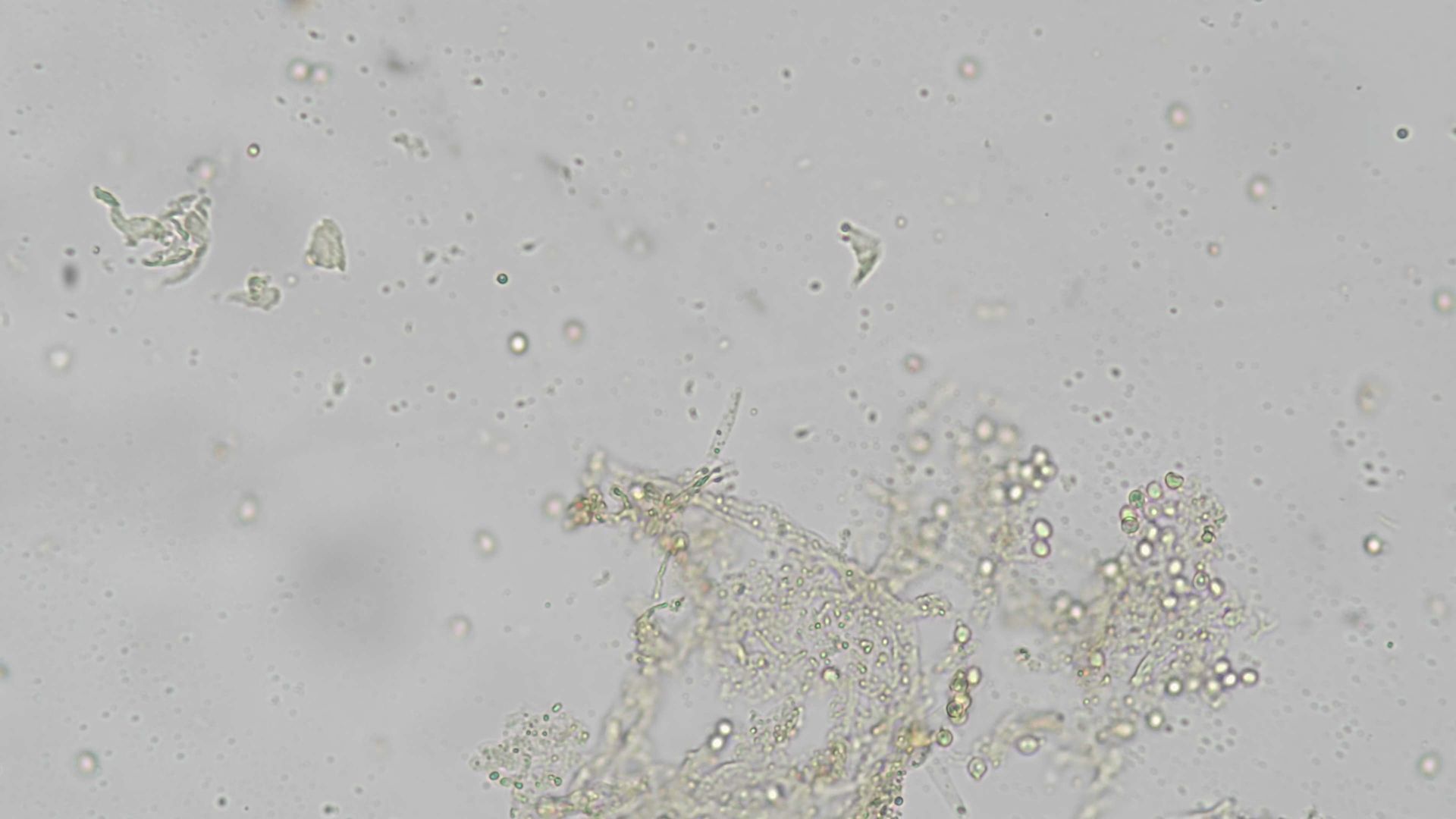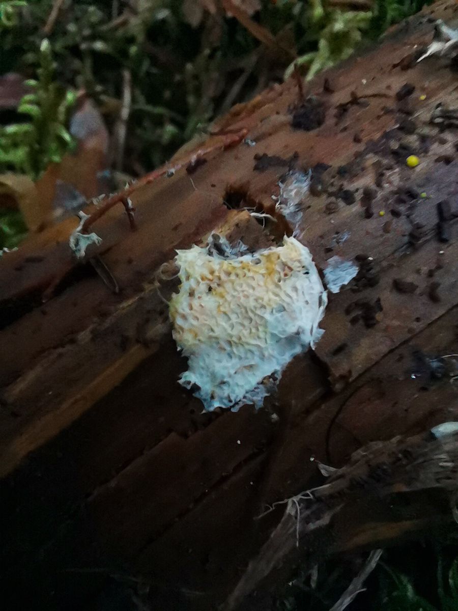 Das kommt wohl makroskopisch hin (Weißer Myzelporling).