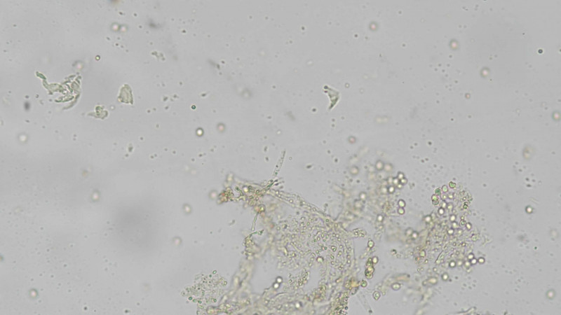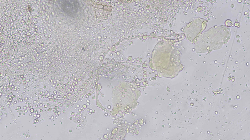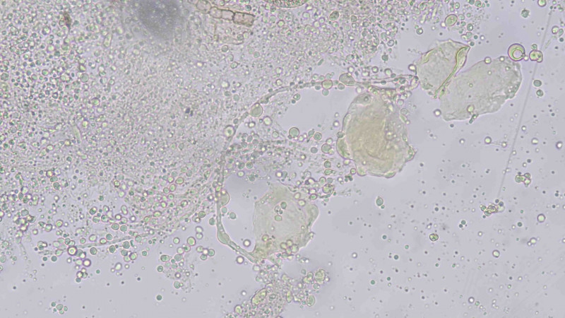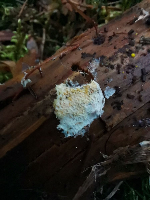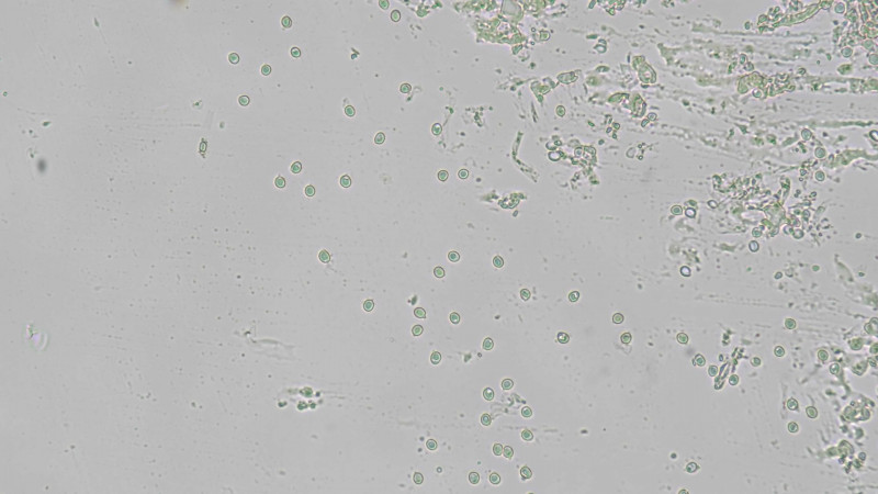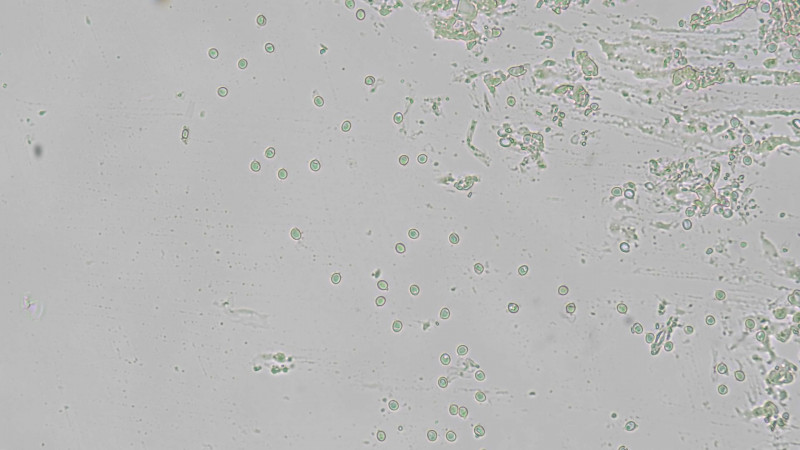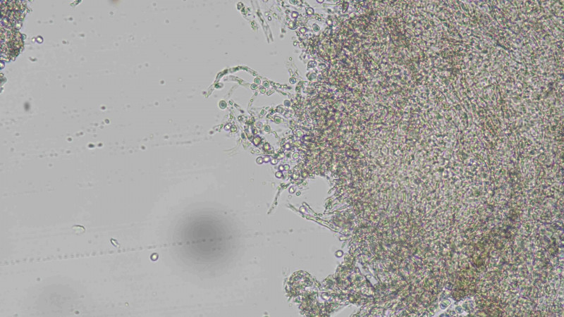 Ich habe hier einen rindenpilz auf Kiefer oder Fichte gefunden und wäre neugierig ob jemand von euch eine Idee hätte lg. Basidien fand ich keine Sporen in Wasser Sporen in melzer amyloid denke ich Ich denke hier generative hyphen mit schnallen zu sehen Sporenmaße Sporen in melzer wieder sie sind amyloid oder