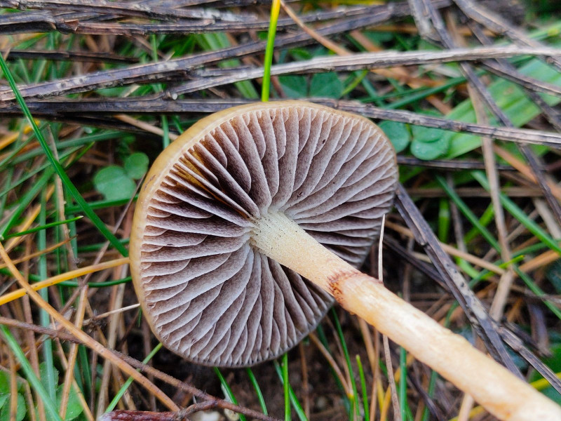 Die Lamellen sind für Clitocybe dicht stehend und ausgeprägt herablaufend. Der Stiel ist braun und nach meiner Ansicht sind die Rizomorphen ausgeprägt, so das vielleicht