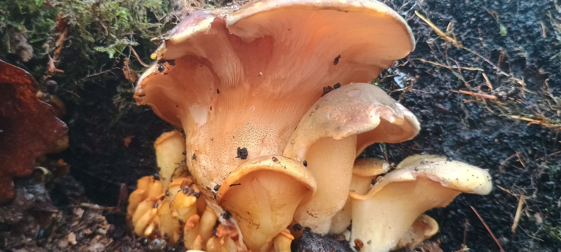 Mein Vermutung: Ebenfalls ein gelbstieliger Muschelseitlung oder vielleicht ein Austernseitling?