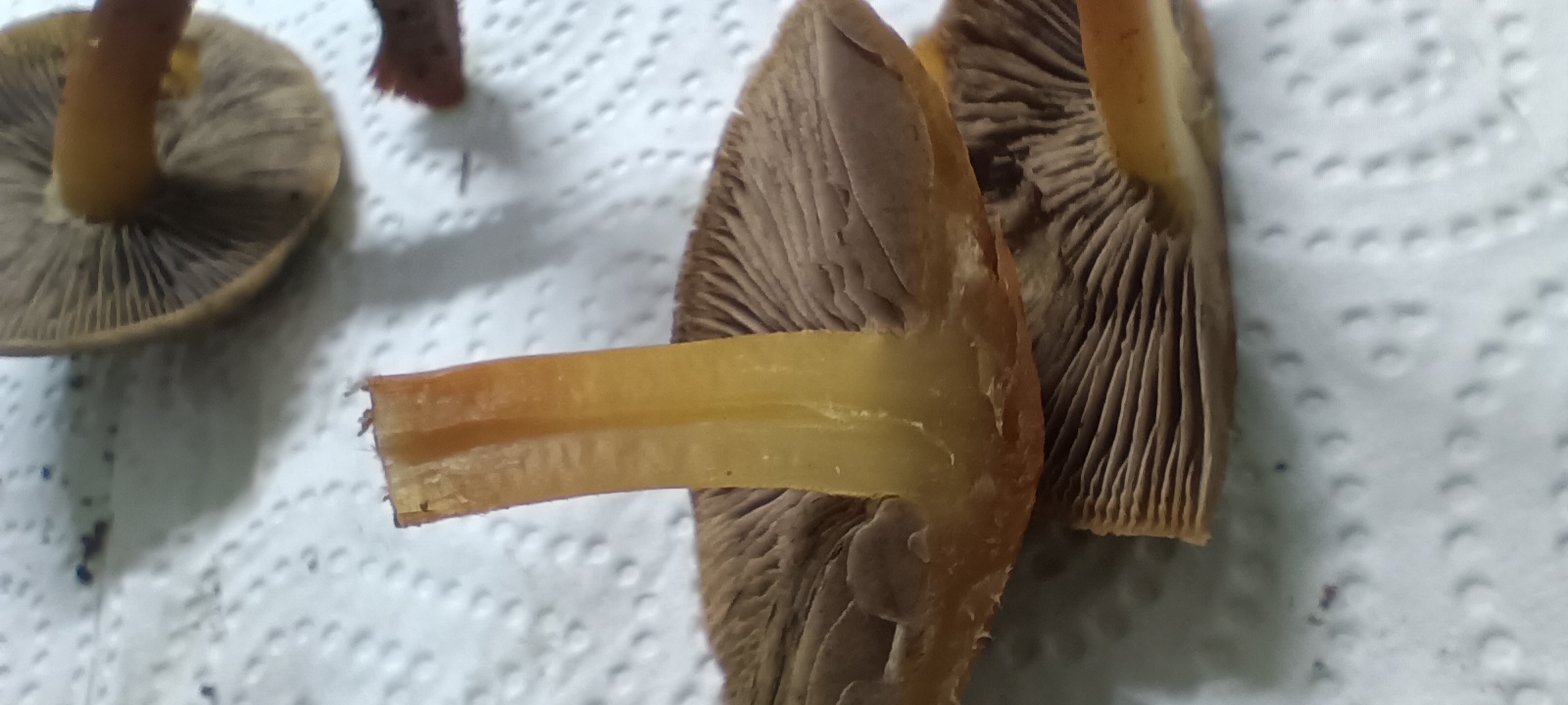 Stiel: braun; zur Stielbasis dunkler; Innen Hohl