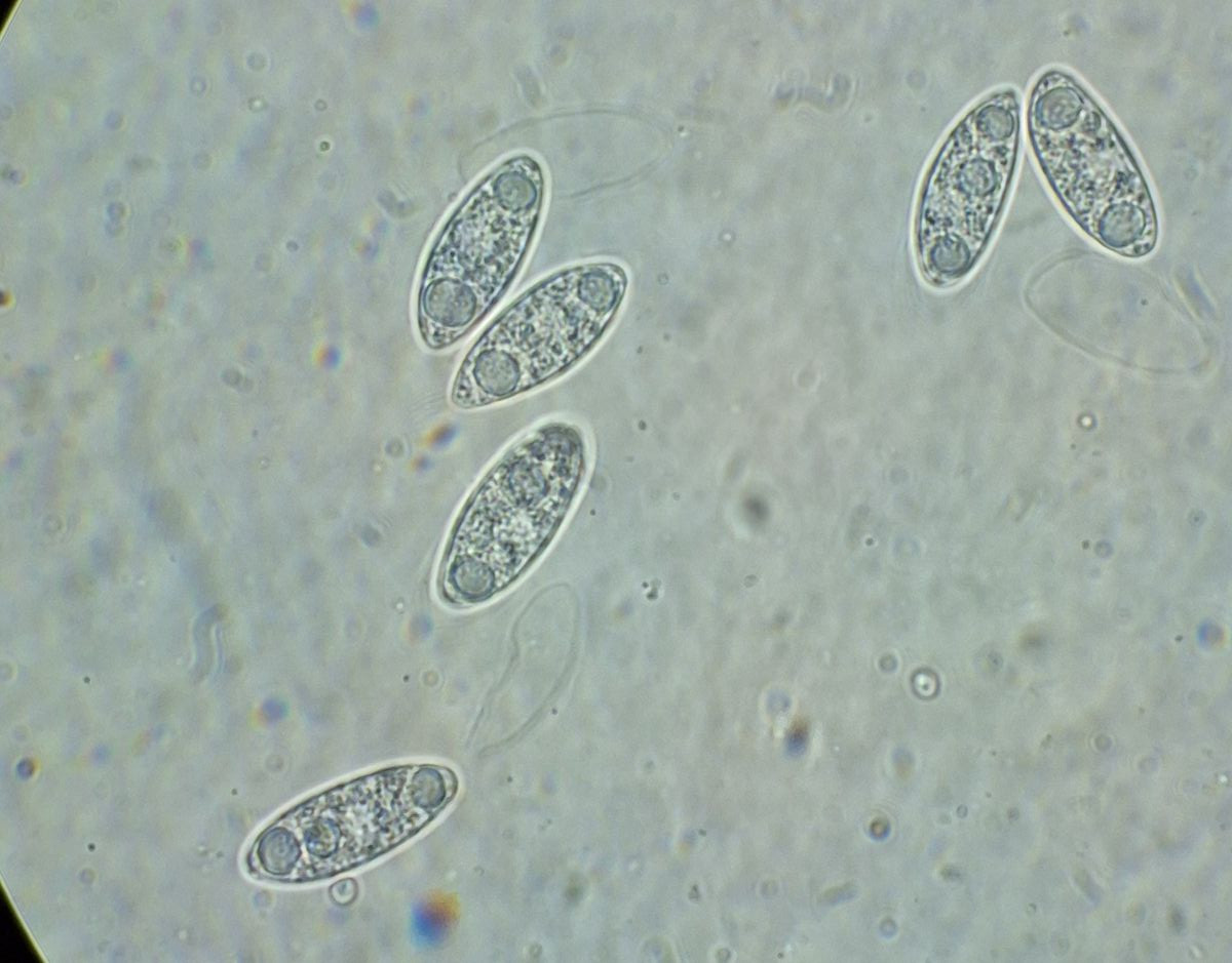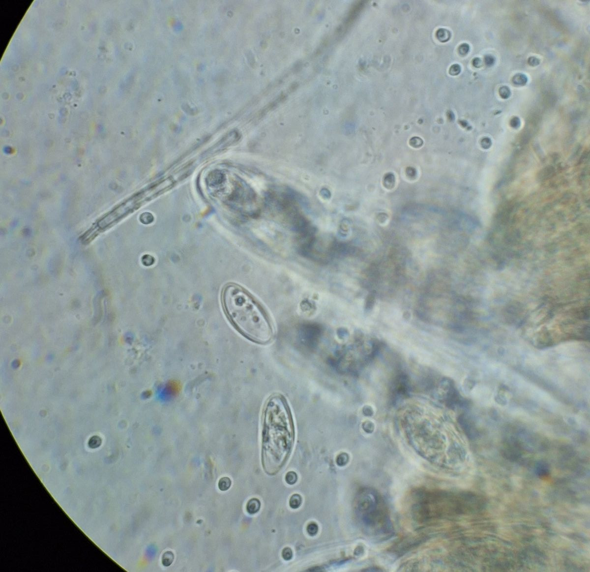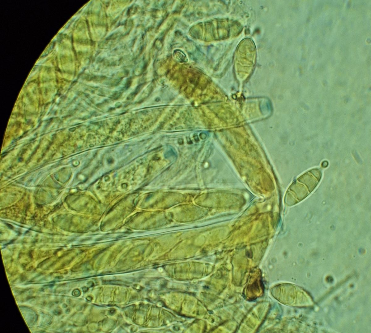 In Wasser, Asci so 170-210 µm lang, Sporen halbwegs einreihig, 18-22 (26)*7-10 µm, mit Tropfen, freie Sporen oft mit je einer Kuller an den Enden, dann über alles bis 30 µm lang. Daneben noch kleine Dinger, die evtl. als Konidien dazugehören könnten.