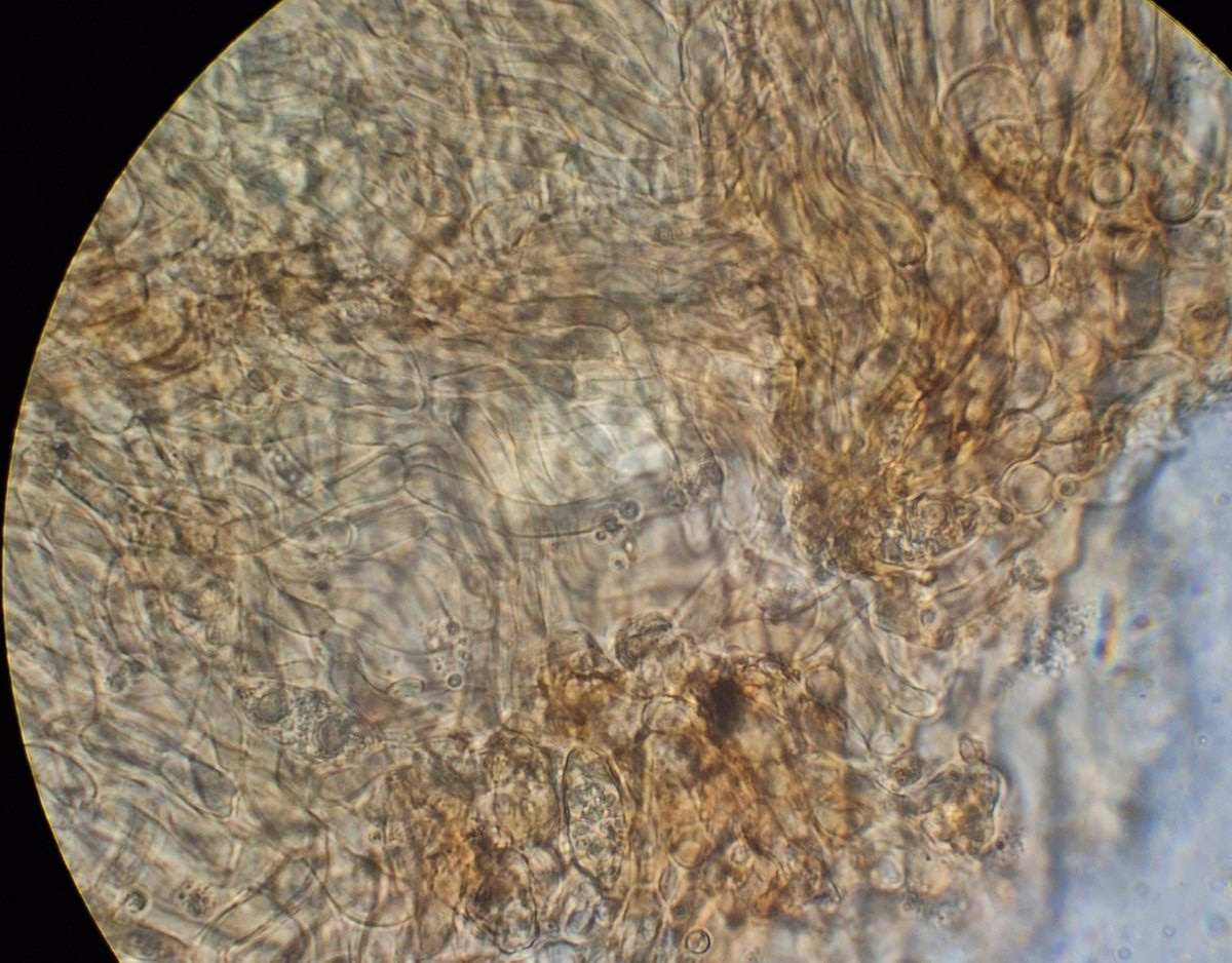 In Melzers J+, die Tropfen in den Sporen sind weg, dafür sieht man in den freien Sporen jetzt je 3 wellige Septen