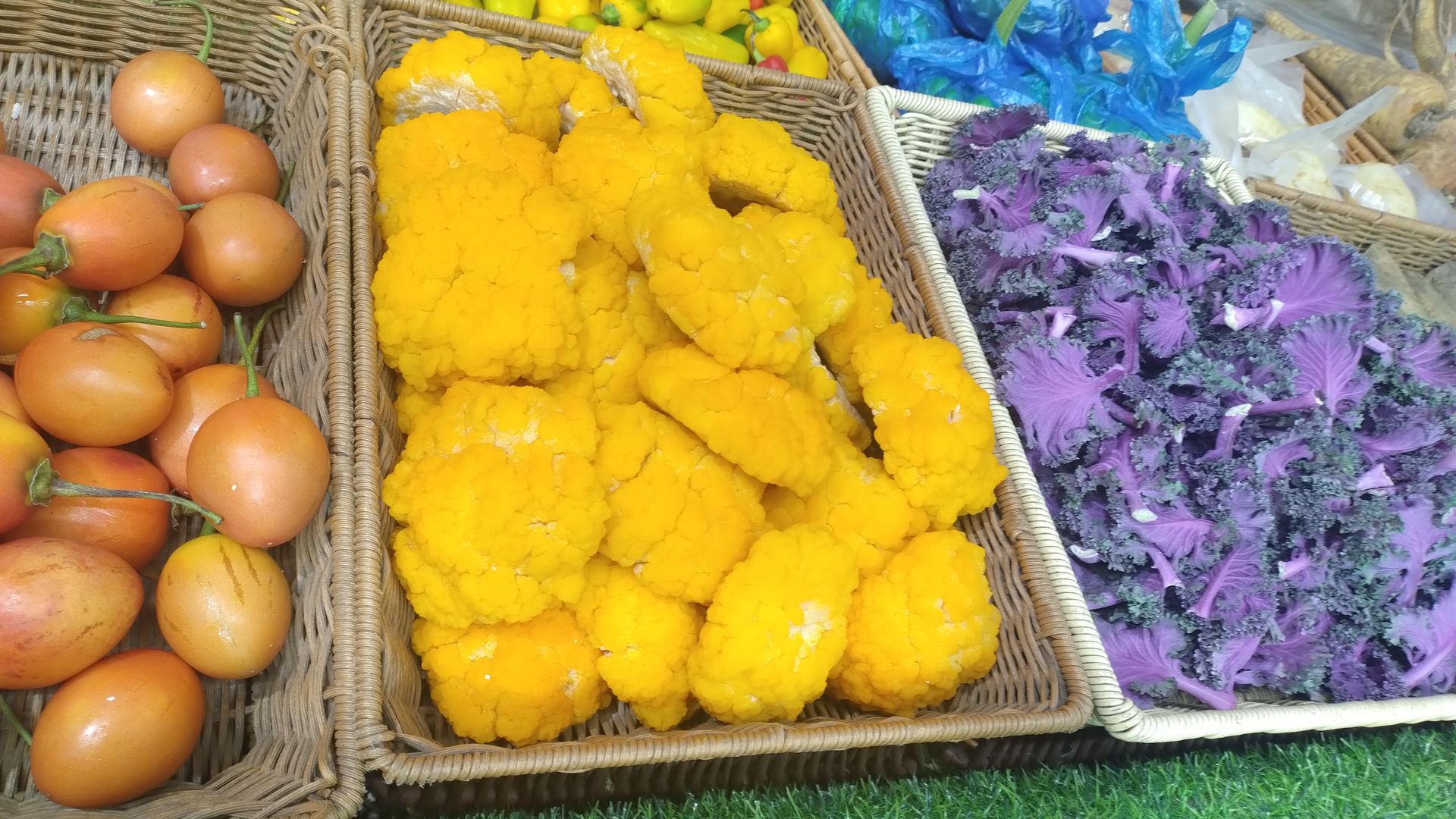 Hallo DJ, das ist doch super interessant! Danke fürs Zeigen, was man in anderen Ecken der Welt so alles ißt und was einem da auf dem Markt für eine Vielfalt, aber auch was für Mengen geboten werden! Besonders die Farben auf dem letzten Bild mit den Tamarillos, dem gelben Blumenkohl-Pilz und den lila Kohlblättern sind wunderschön.