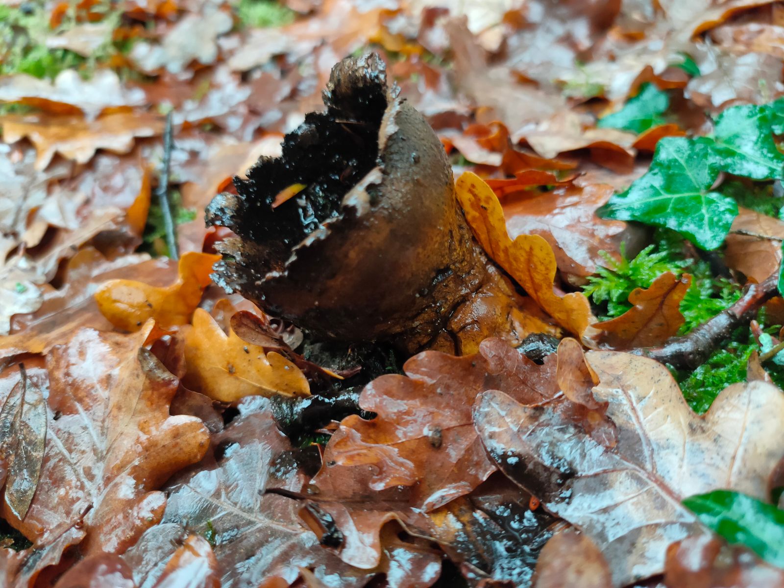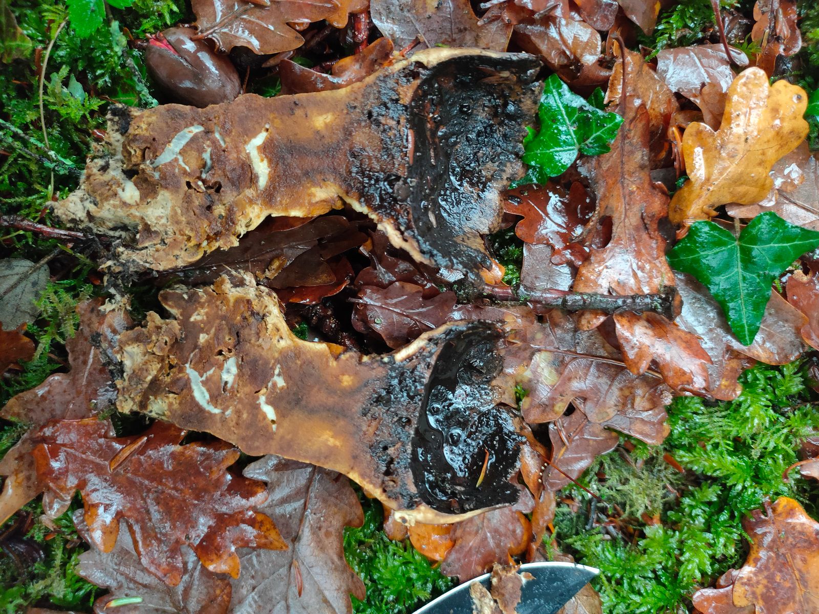 Edit: Der sehr alte FK sieht wirklich nicht nach einer Scleroderma aus. Aber an Urnula craterium glaube ich nun auch nicht mehr.