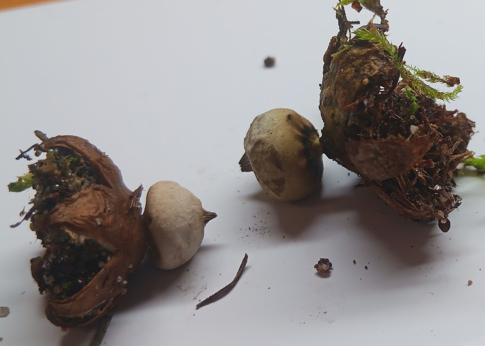 Sehr markant ist die Sporenöffnung. Ich denke hier an den Heide- Erdstern (Geastrum schmidelii). Aber so wie ich gelesen habe, gibt es wohl inzwischen noch mehr ähnliche Arten. Irgendwie sind das wohl auch mehr Arten geworden. Jetzt bin ich doch etwas verunsichert, ob meine Bestimmung stimmt. ![]()