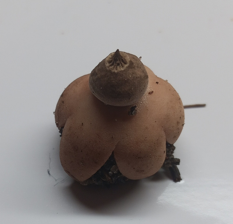 Sehr markant ist die Sporenöffnung. Ich denke hier an den Heide- Erdstern (Geastrum schmidelii). Aber so wie ich gelesen habe, gibt es wohl inzwischen noch mehr ähnliche Arten. Irgendwie sind das wohl auch mehr Arten geworden. Jetzt bin ich doch etwas verunsichert, ob meine Bestimmung stimmt. :/