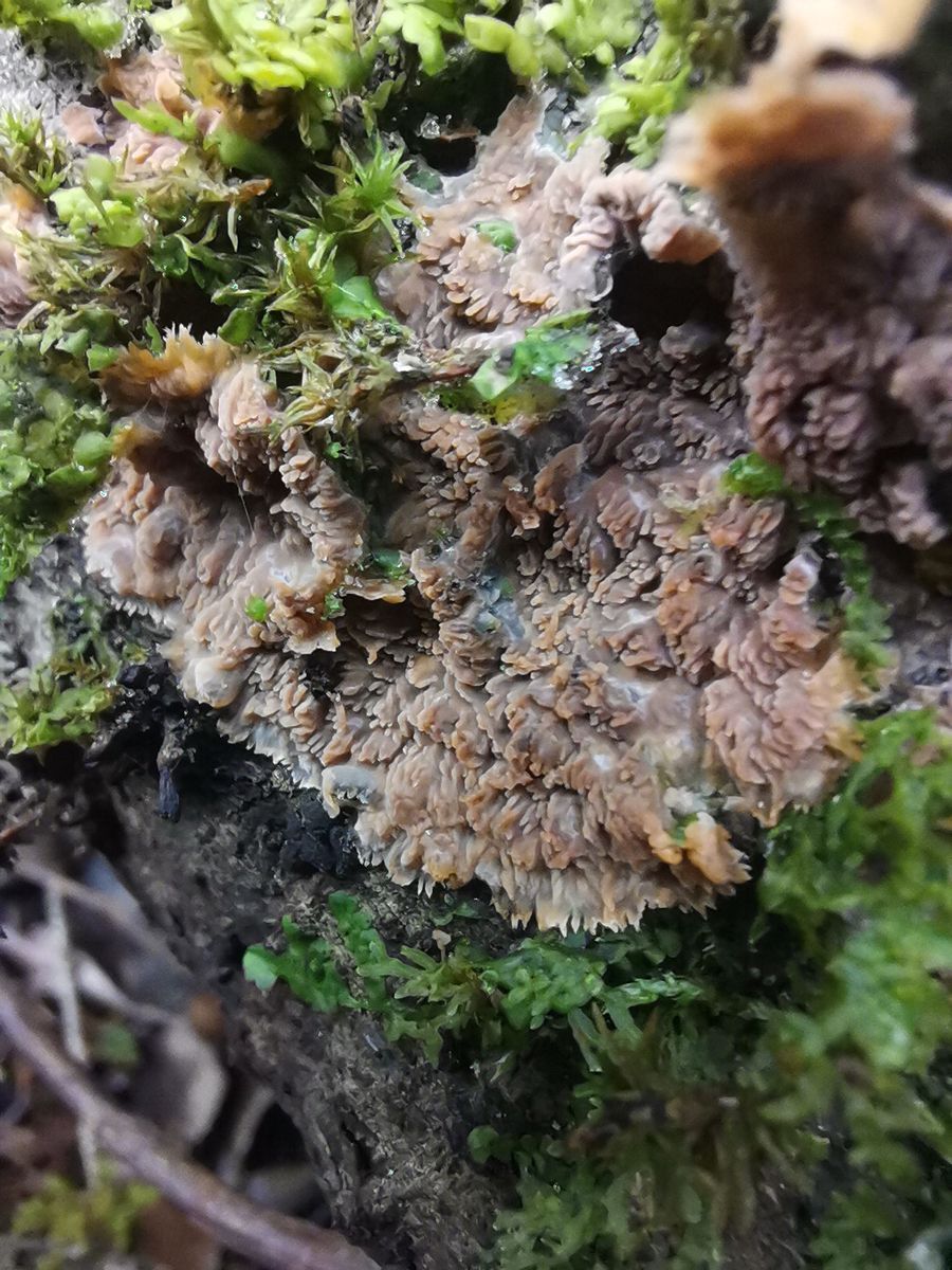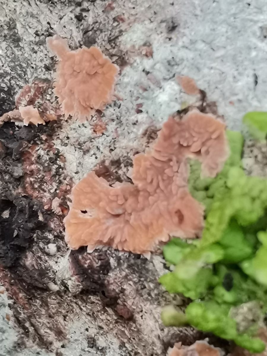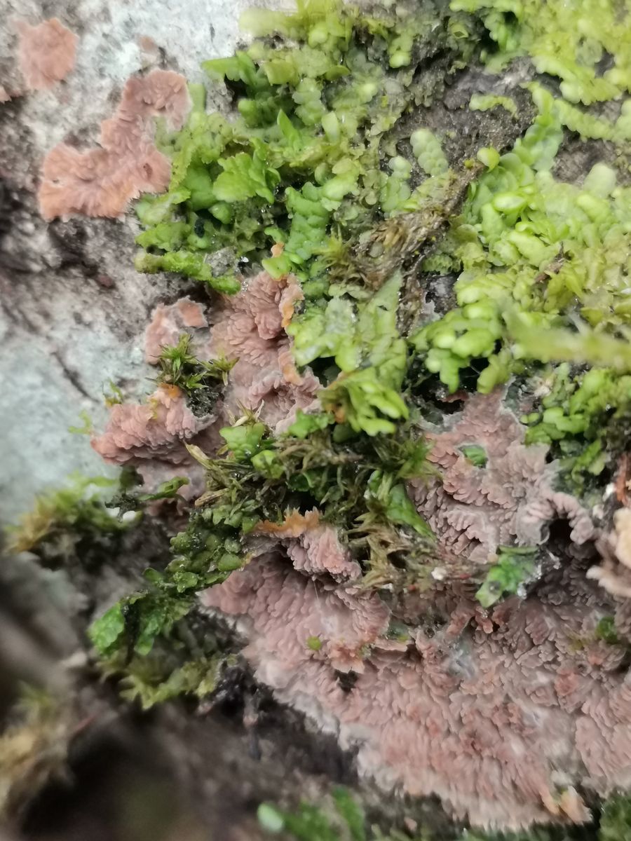 Guten Abend ich komme hier auf eine phlebia Art oder. Sie wuchs auf laubholz und die Sporen messen 5 bis 6 mm radiata oder rufa sicher nicht oder es ist etwas völlig anderes lg.