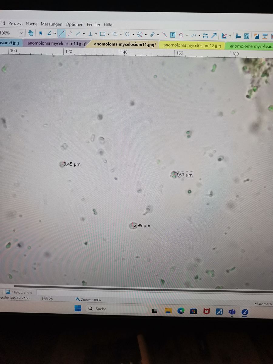 Hier sind die Sporenmessungen dazu zwei Bilder davon sind die sporen in melzer lg.