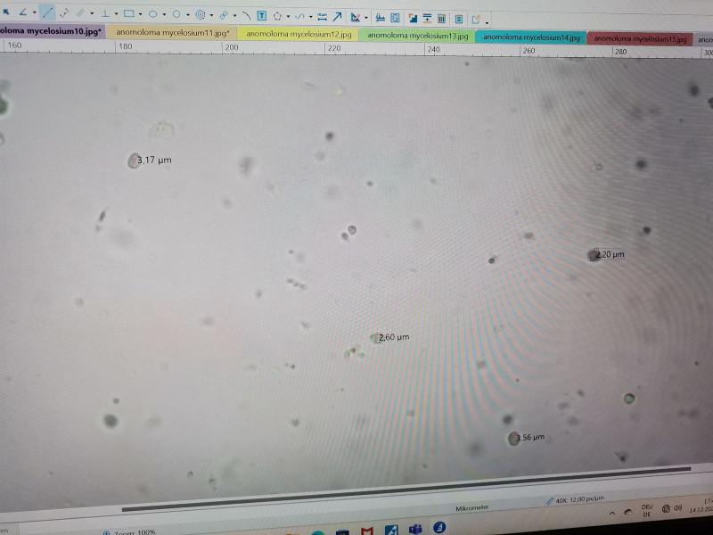 Hier sind die Sporenmessungen dazu zwei Bilder davon sind die sporen in melzer lg.