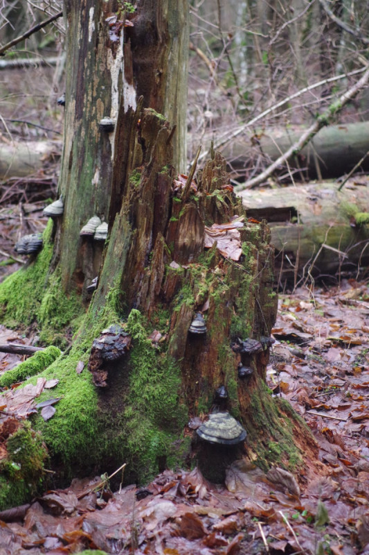 Daneben steht eine Zwillingsfichte, auch schon etwas älter, bei der ein Zwilling nun umgefallen ist