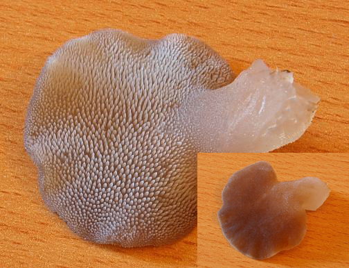 Pilz sieht grau/braun aus. Höhe ca 5 cm. Unterseite: hunderte kleine weisse Spitzen etwa 1mm.