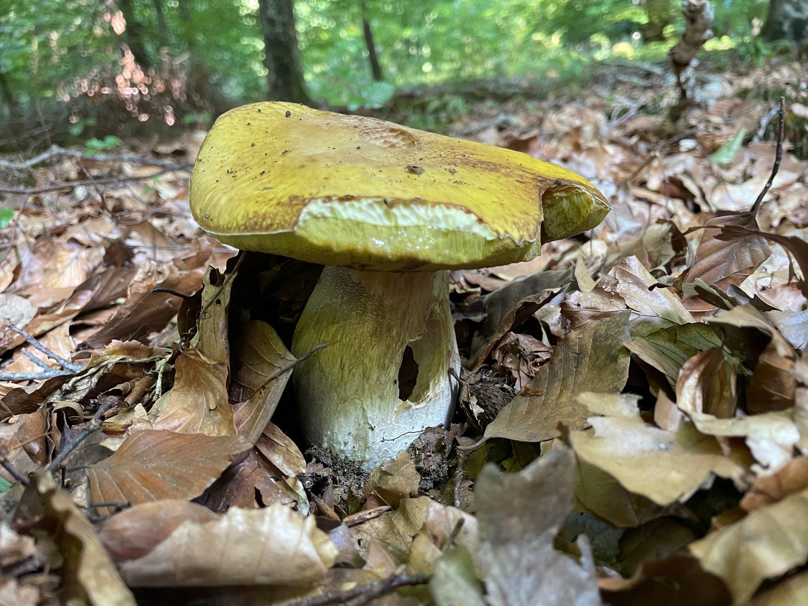 12. Bevor es Ende Juli dann endlich mit den Röhrlingen losging. Hier aus einem eigentlich schnell austrocknenden Kalkbuchenwald, der aber halb unter Wasser stand stark bedröppelte Satansröhrlinge
