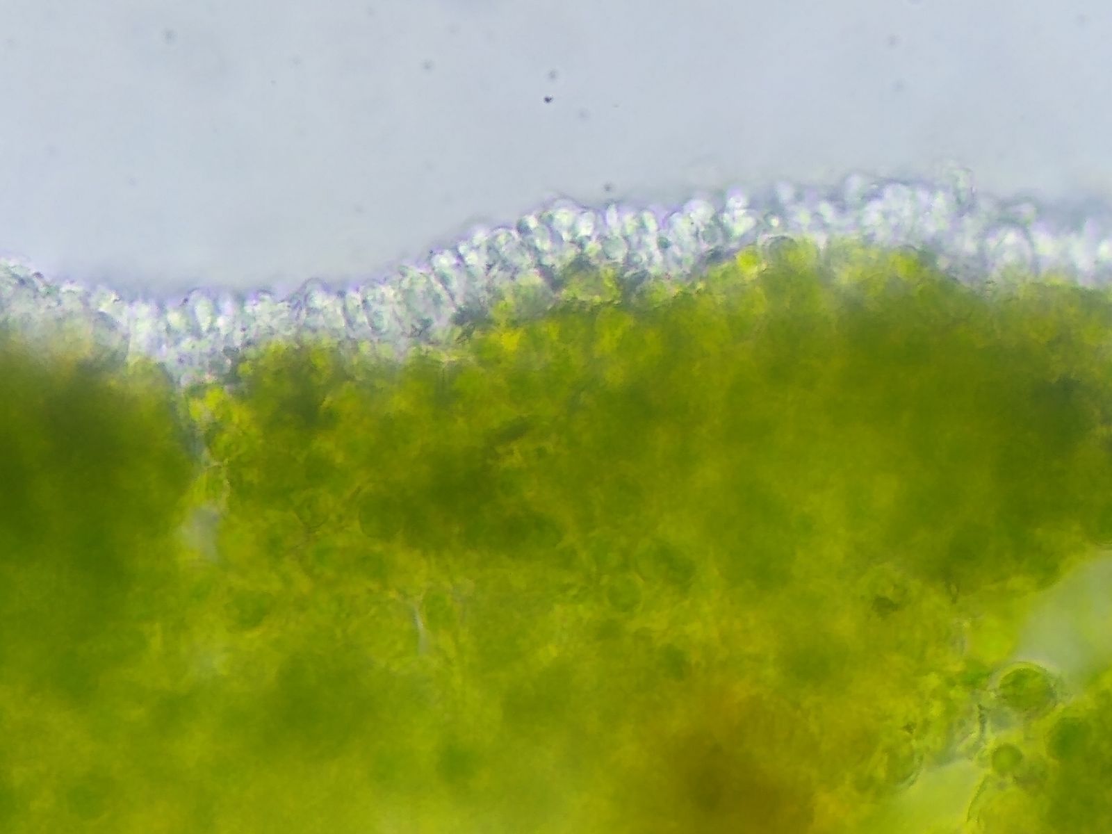 Bild 10 Dünner, farbloser Cortex, nur wenige (2-3) Zellen dick