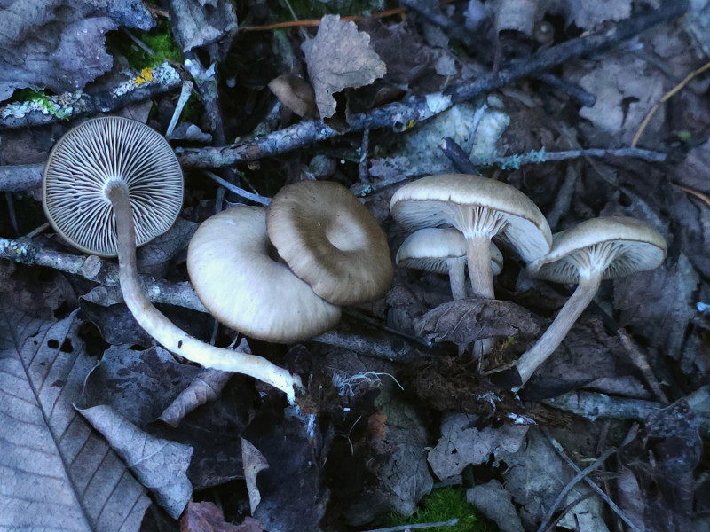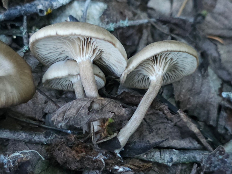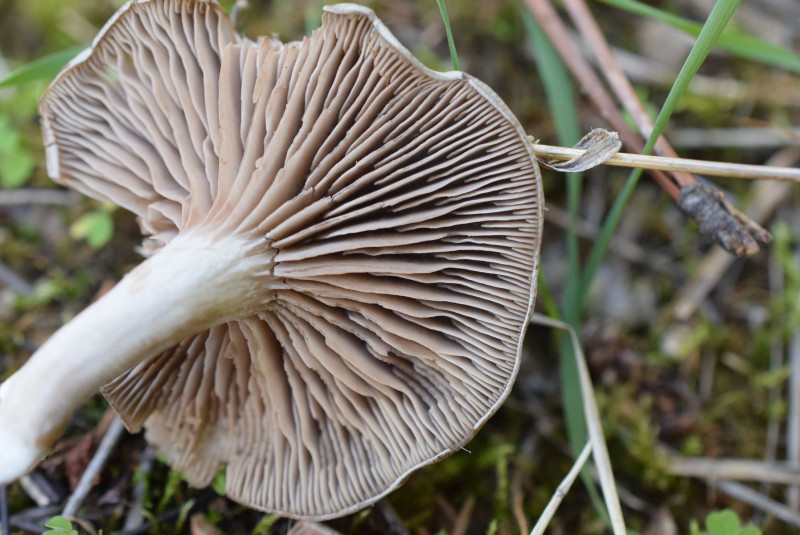 Auffallend sind diese graue Lamellen, ansonsten sieht er eher wie ein beliebiger Trichterling aus.