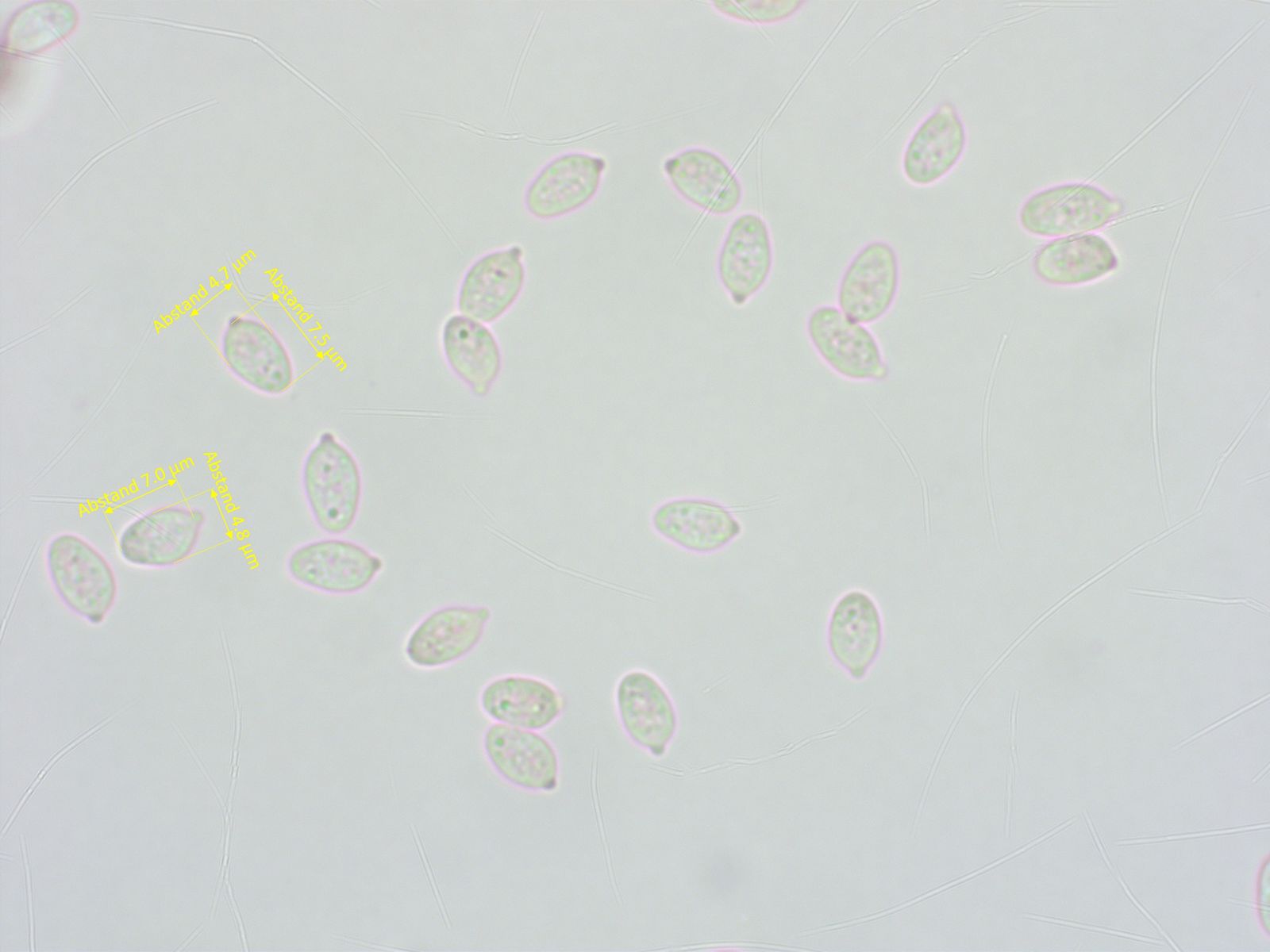Sporen mit auffallendem, kräftigem Apikulus, etwa 6.5-7.5 x 4.5-5 µm