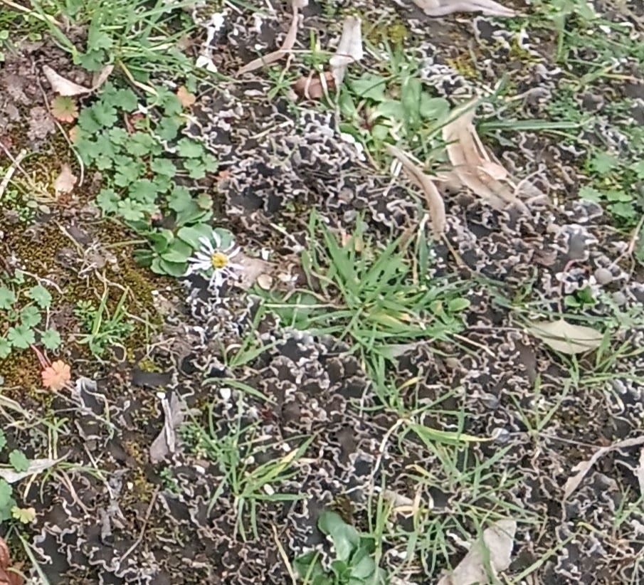 Alle Thalli sehr klein,braun , Lobenränder aufsteigend ,geziert mit weißgrauen Bortensorale.