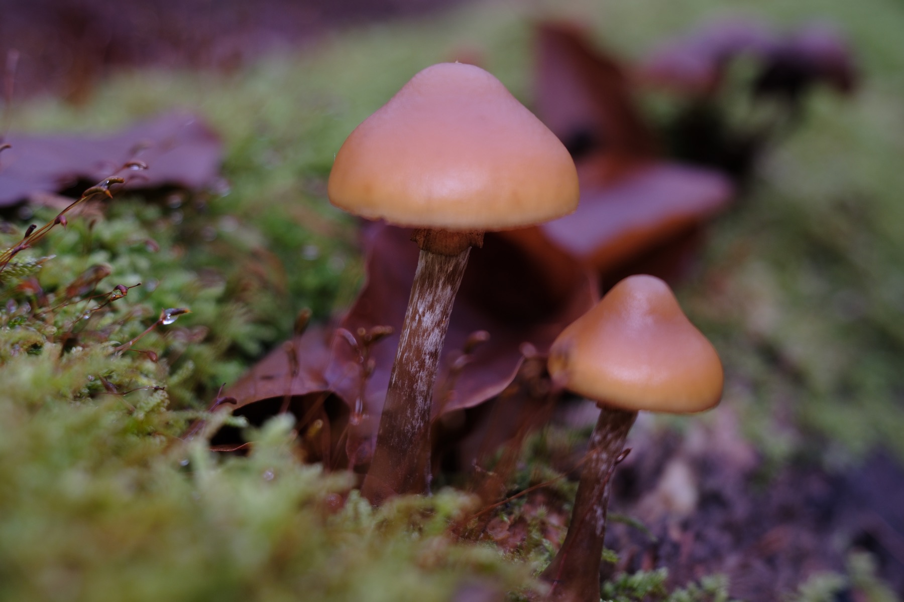 Gestern habe ich diese Pilze auf einer toten Rotbuche gefunden. Ich vermute den Samtfußrübling aufgrund der Farbe, des Standorts, des fehlenden Rings, der Farbe und dem Farbverlauf des Stiels, der Lamellenfarbe und der Jahreszeit. Ich behaupte auch den samtartigen Fuß erkannt zu haben, da bin ich mir aber unsicher.