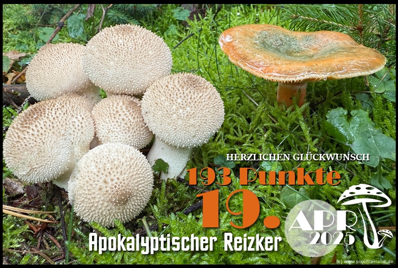 Es gibt 1.196 Antworten in diesem Thema, welches 27.404 mal aufgerufen wurde. Der letzte Beitrag () ist von Apokalyptischer Reizker.
