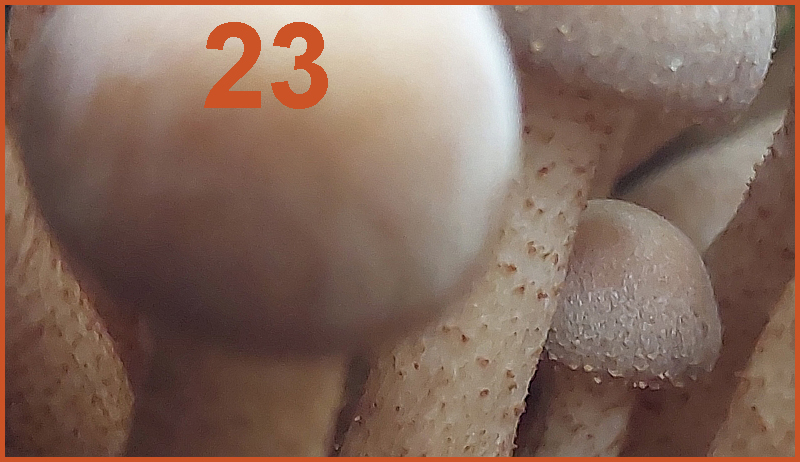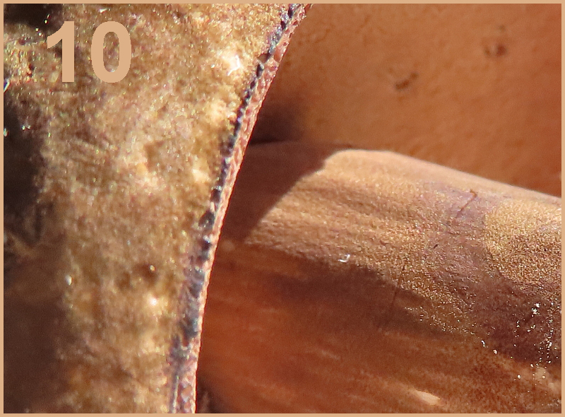 • Der Täubling... Fand ich erst wegen der zurückgezogenen Huthaut eindeutig, bis ich gelesen habe, dass andere Täublinge das auch können - z.B. der wechselfarbige Speitäubling. Da ich die wenigsten Pilze jemals selbst in der Hand hatte, fand ich das schwer zu entscheiden. Am Ende hat eine ganz unmykologische Überlegung gesiegt: Beim 1. Türchen wird Hans uns doch nicht so böse reinlegen wollen!