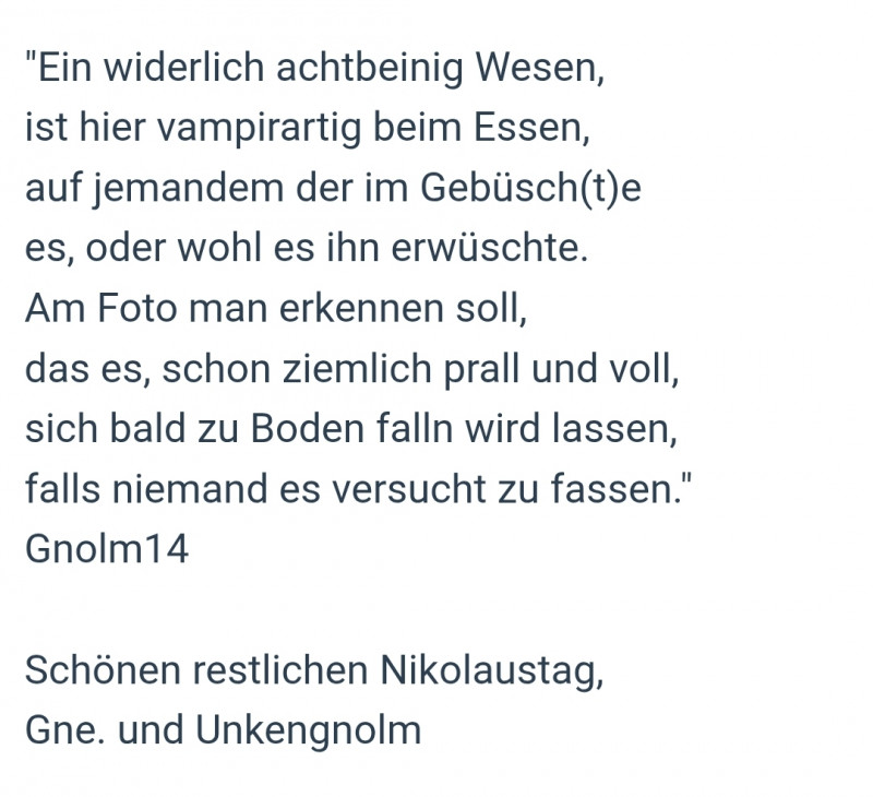 Genau! Das sage ich ja auch seit jeher, beispielsweise seit jener 6B im APR 2017, wo Gnorbert einen Rötenden Erdstern so fotografierte, dass U und ich fest davon überzeugt waren, dass es wohl folgendes sein müsse (und wir haben lange am entsprechenden Gedicht gefeilt):