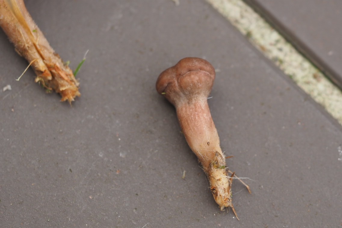 Bild 5: Nochmal der hohle Stiel, hier dunkleres Stielfleisch, außen auch faserig und etwas filzig