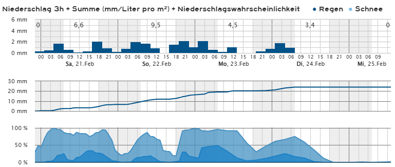 bisher ist der Februar bei mir deutlich niederschlagsreicher als der Januar. Rund 34 Liter sind diesen Monat bisher. Und es sollen in den nächsten Tagen noch etliche Liter hinzukommen.