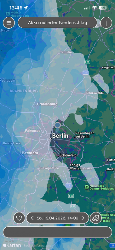 sieht doch für die meisten Gebiete im NO, insbesondere Richtung Barnim/Uckermark/östliche Seenplatte/Ostvorpommern, sehr gut aus. Seit langer langer Zeit mal wieder ergiebige Regenfälle. Bin mal morgen Mittag auf die 24-stündigen Niederschlagssummen gespannt. ;)