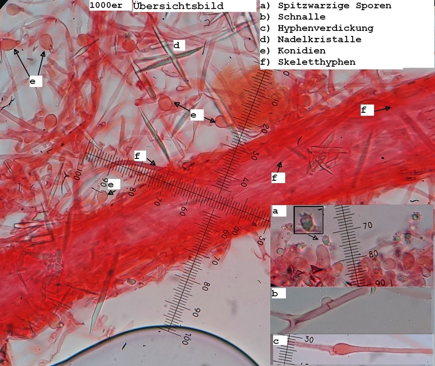 Alle relevanten mikroskopische Merkmale sind im Übersichtsfoto und weiteren Detailaufnahmen abgebildet und kurz beschrieben.