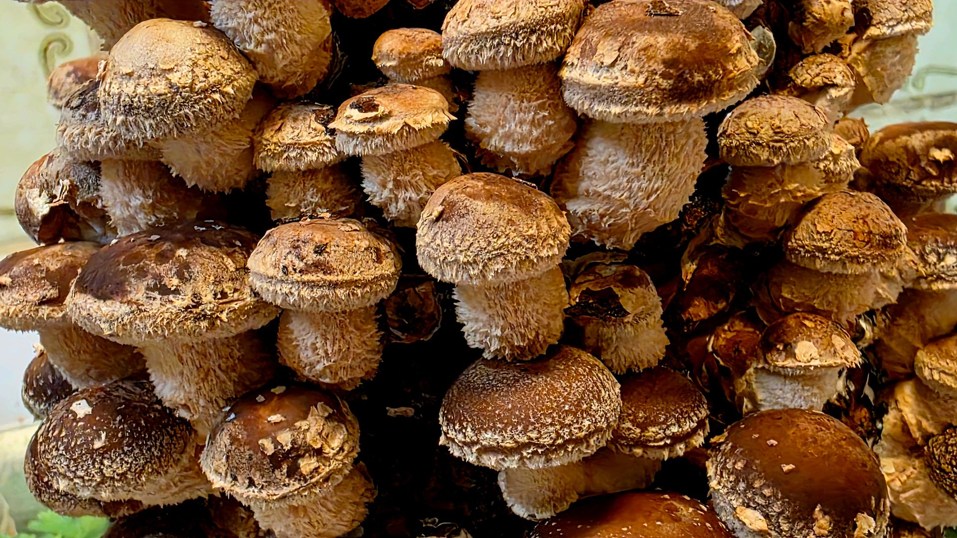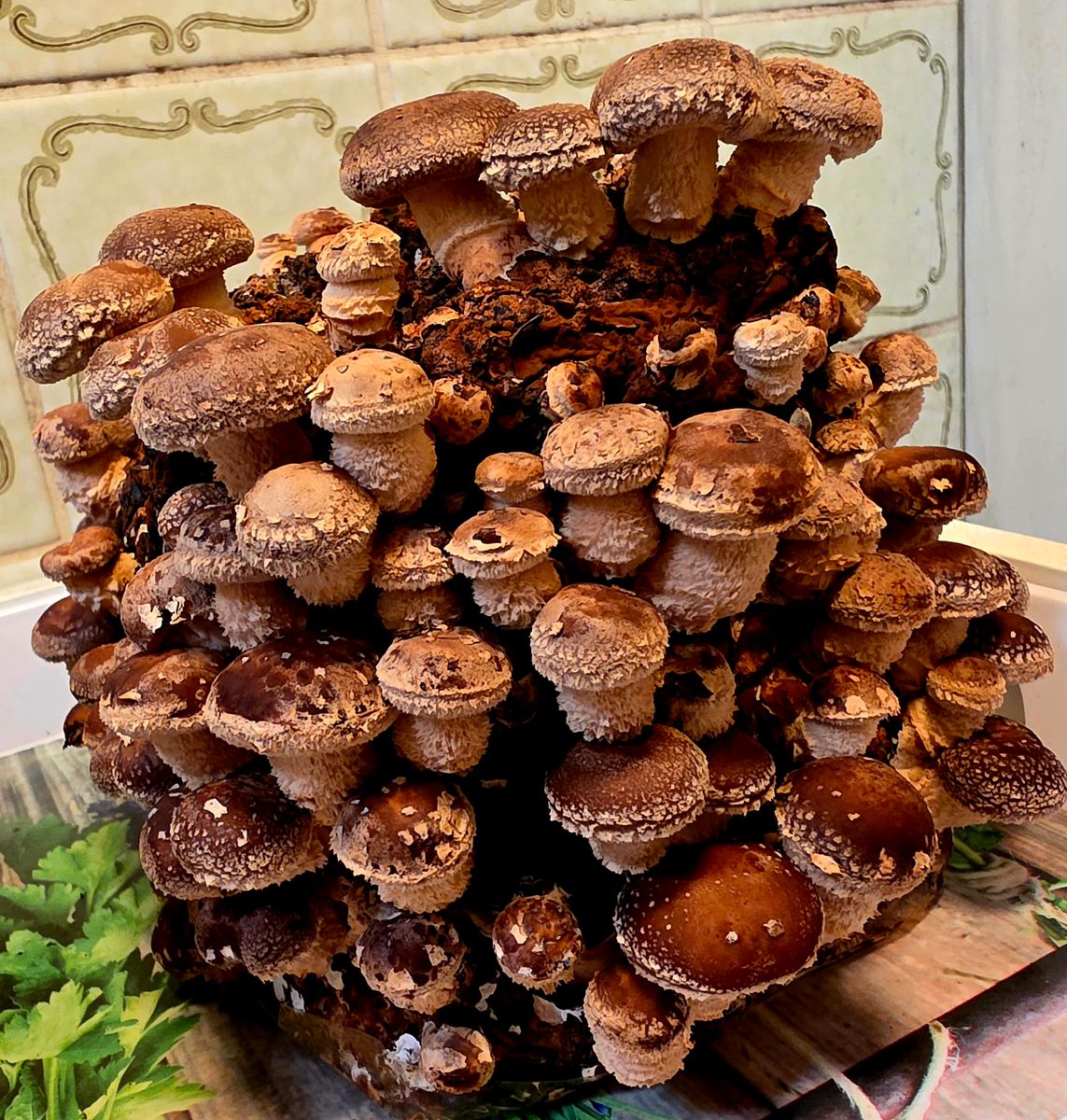 Man braucht frische Shiitake (ein Schälchen aus dem Supermarkt, aber wirklich frisch sollten sie sein) - große Hüte halbiere, kleine Hüte im Ganzen