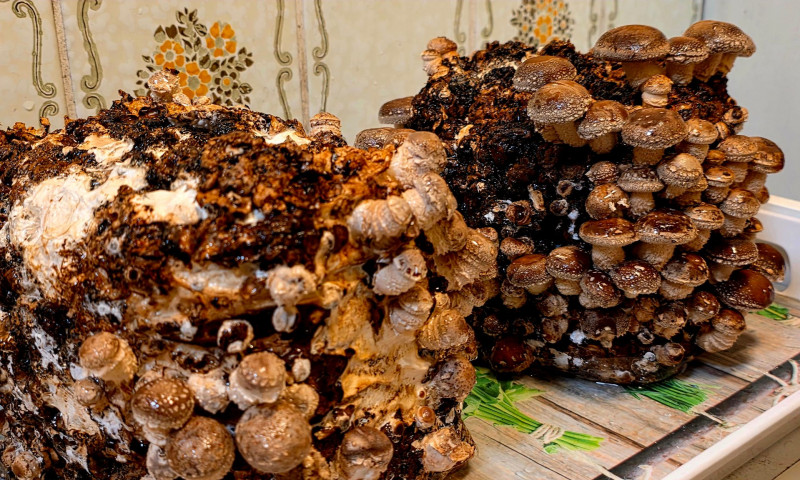 Man braucht frische Shiitake (ein Schälchen aus dem Supermarkt, aber wirklich frisch sollten sie sein) - große Hüte halbiere, kleine Hüte im Ganzen