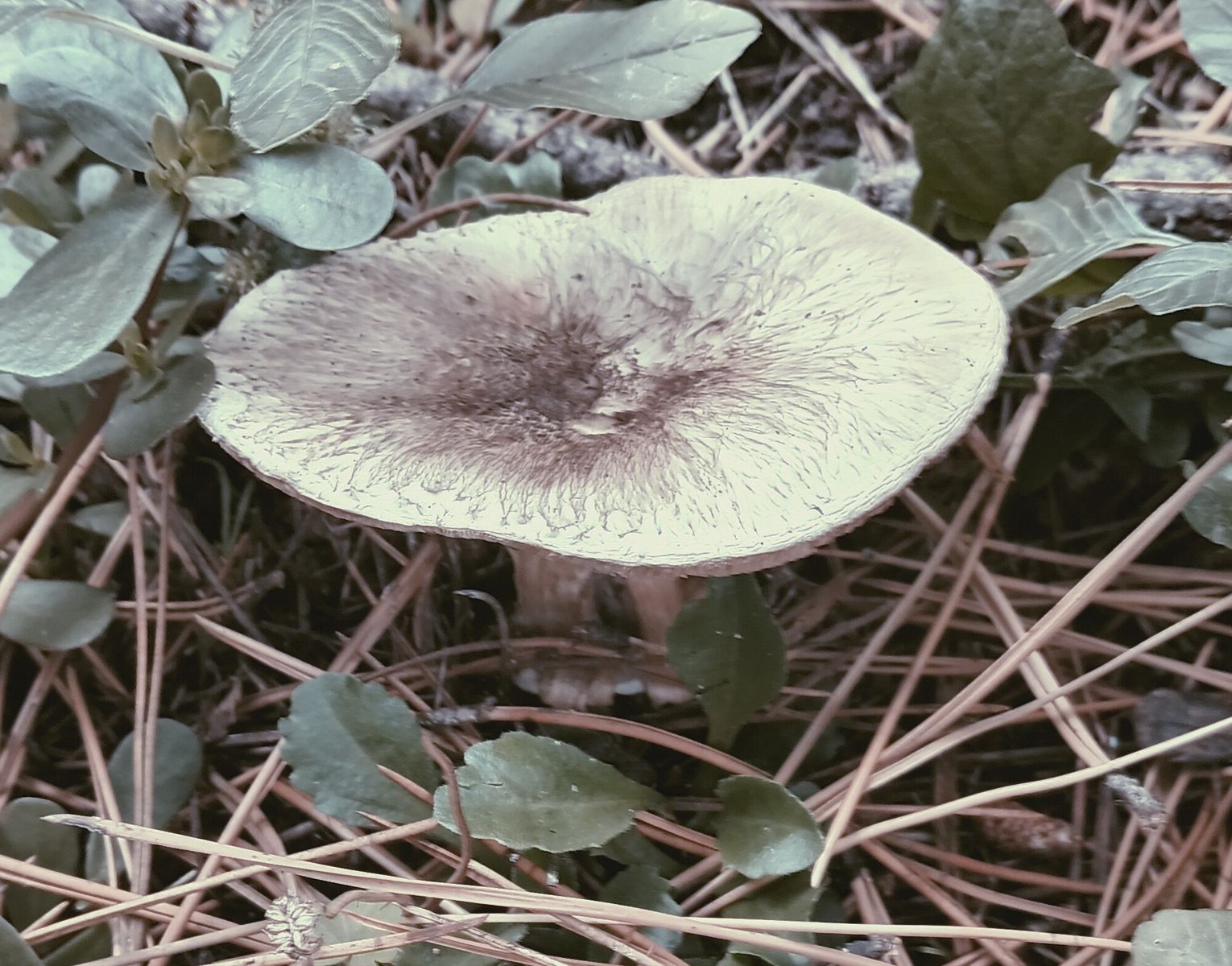 Im Stiel/Lamellen Roetender bzw. Rostflecken der kleiner Trichterling, ebenda