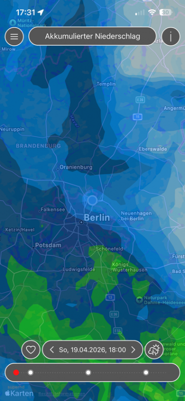 Bei uns sind es jetzt knapp 40 Liter und es regnet immer noch ein wenig.