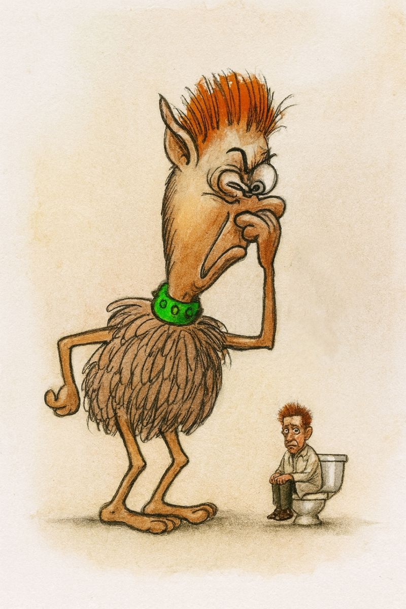 Winziger Suku auf dem Klo, wegen Gestank nach Mäuseurin und Mäuse sind klein
