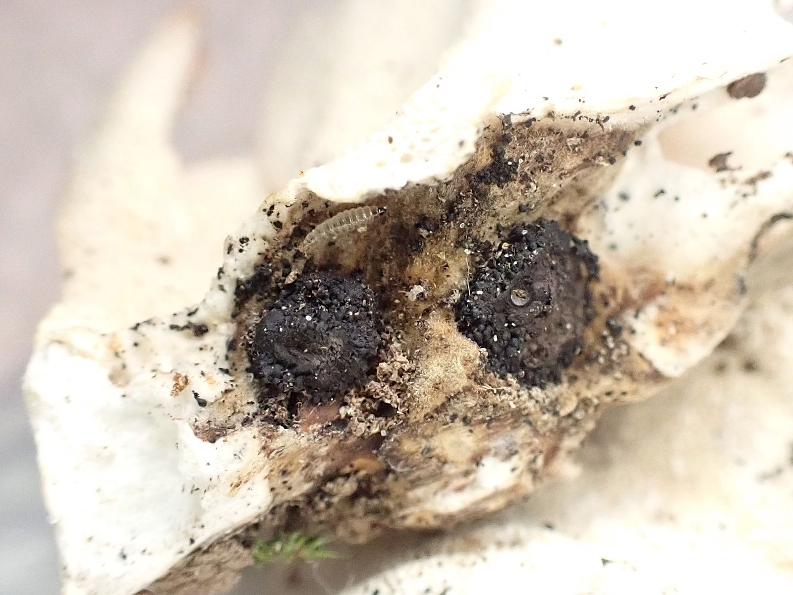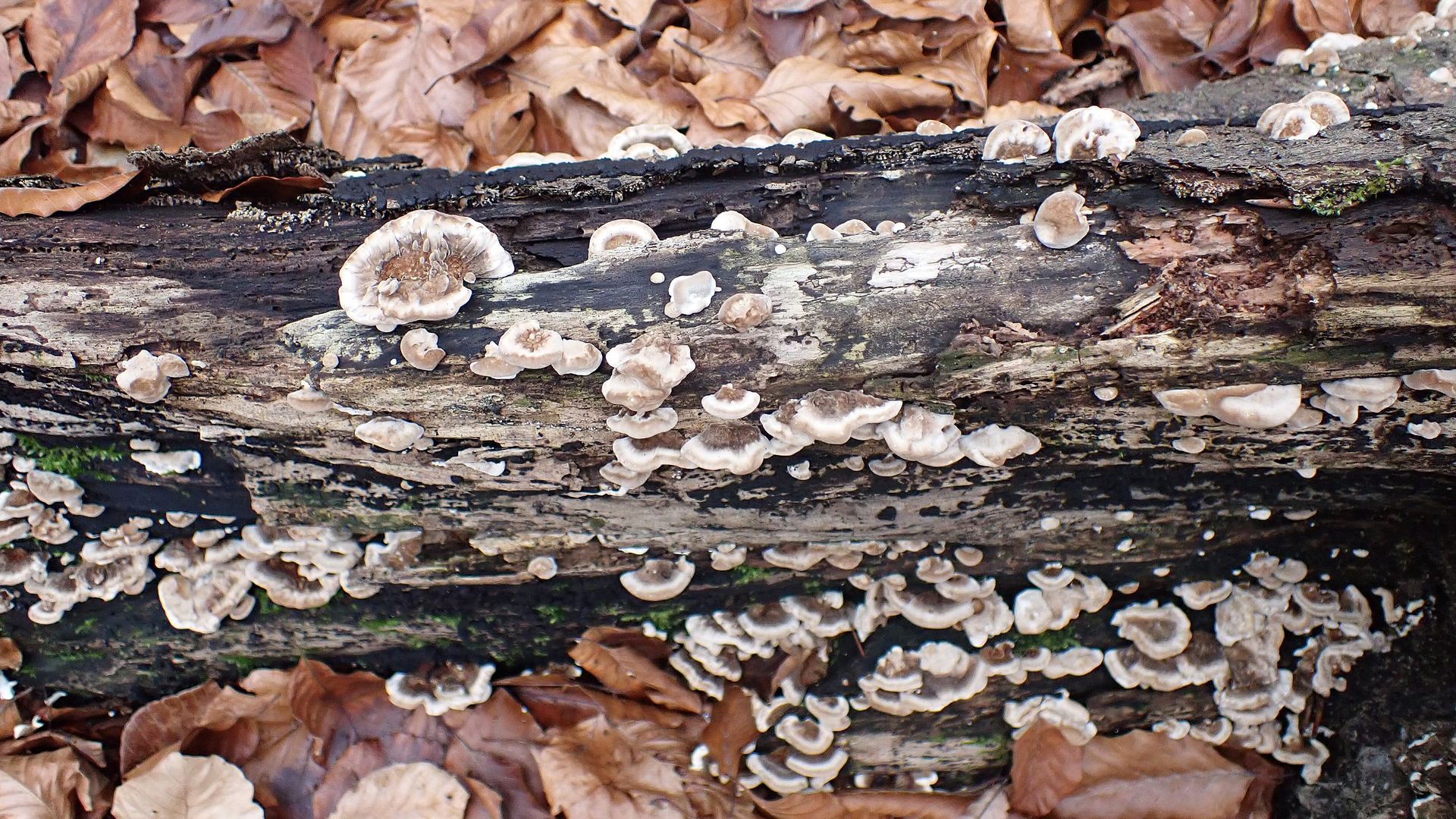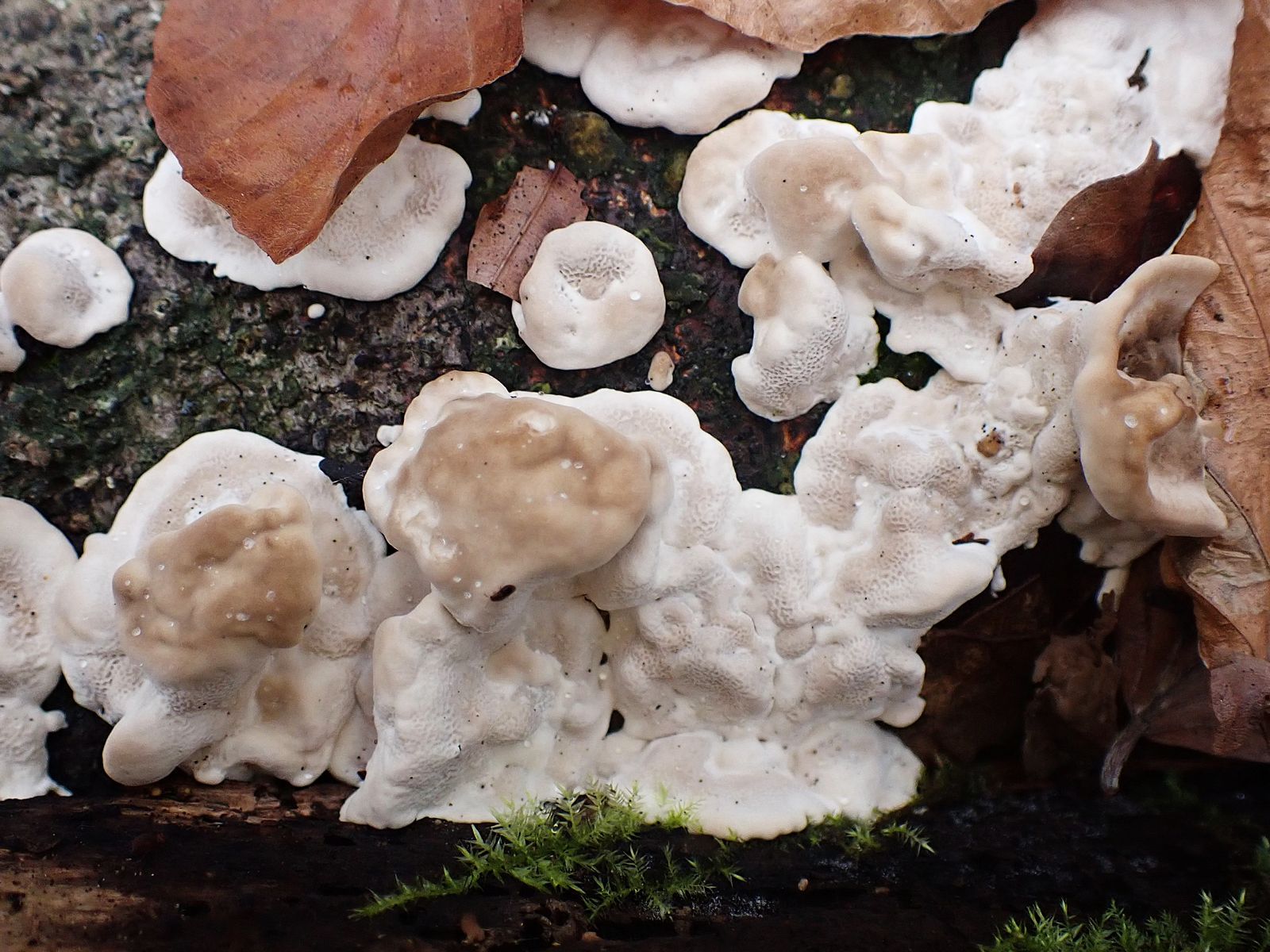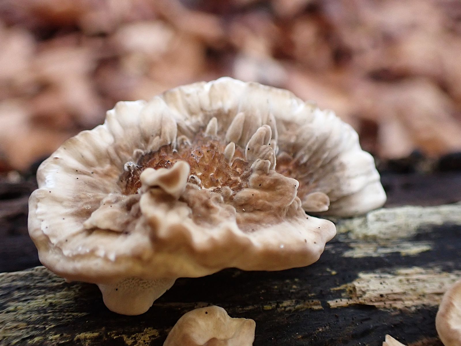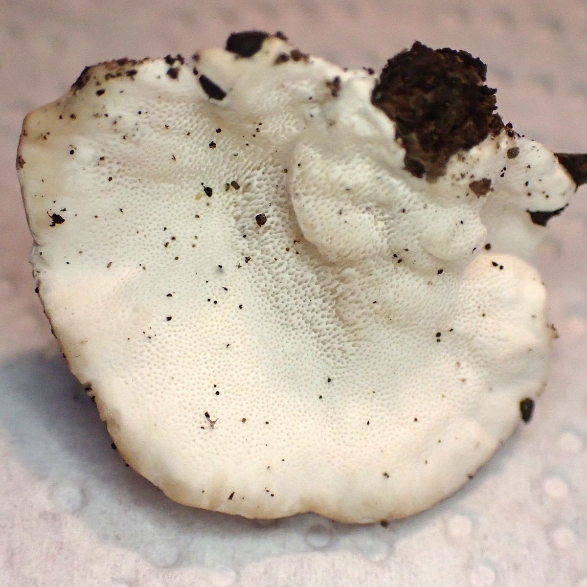 Zugegeben, der Angebrannte Rauchporling hätte in diesem Fall ähnliche Hutfarben, aber der kriegt ziemlich schnell ein braunes oder graues Zentrum in der Fruchtschicht.