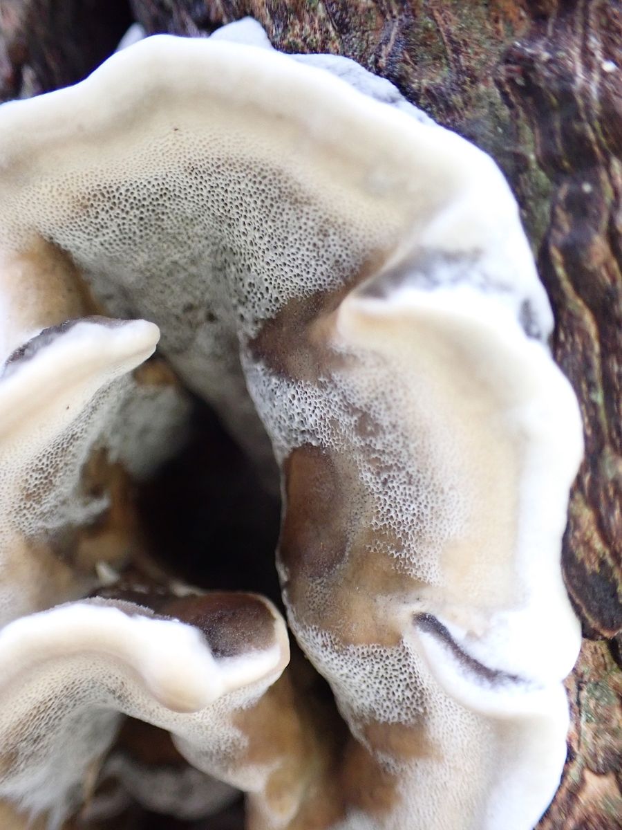 Buckeltramete mit runden Poren? junge Schmetterlingstramete