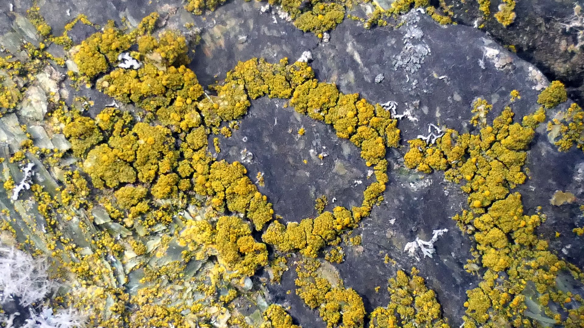 Bild 8 Candelariella vitellina kommt in großen Mengen auf den Felsen vor
